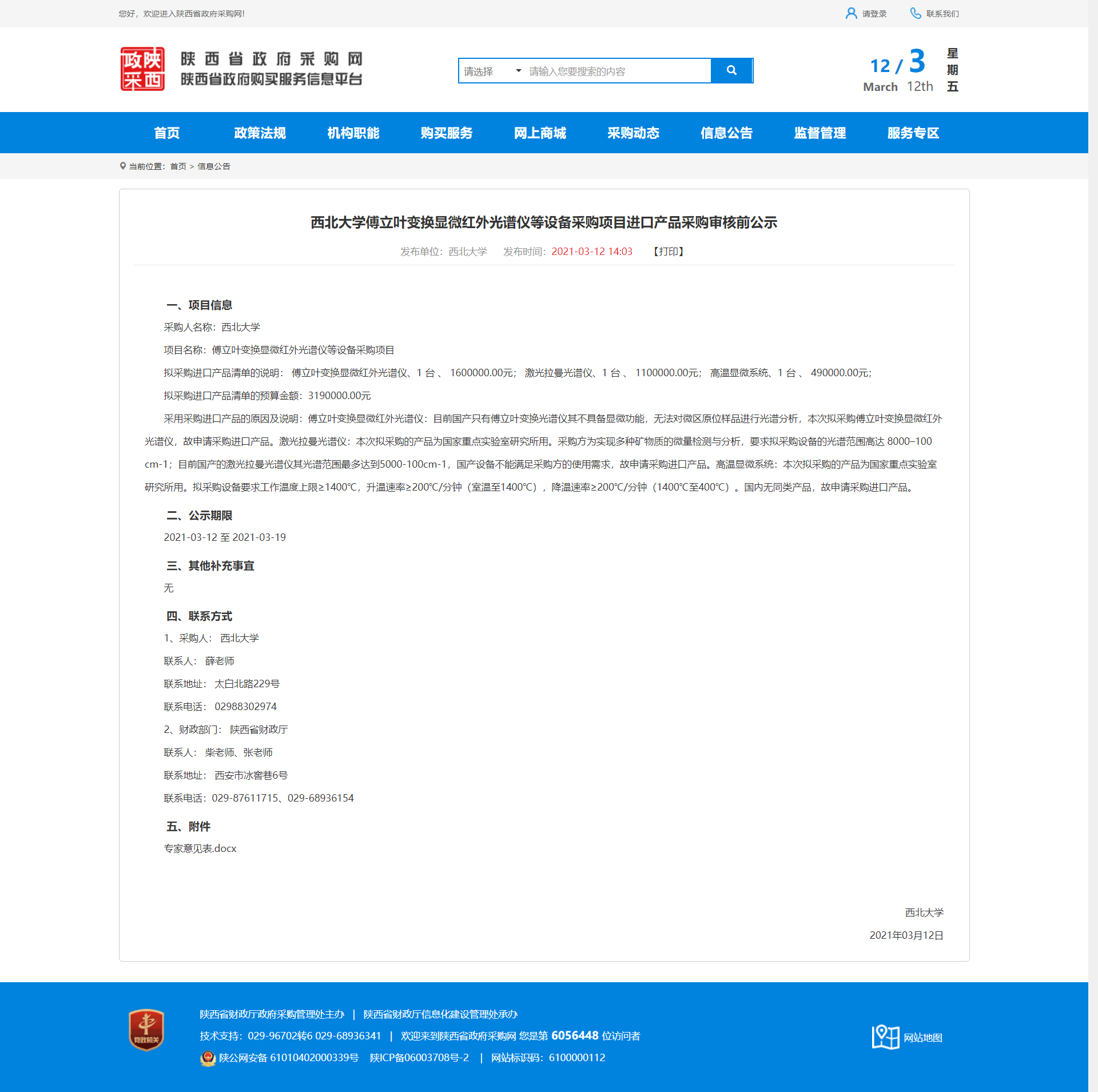 广发体育傅立叶变换显微红外光谱仪等设备采购项目进口产品采购审核前公示 作者: 编辑:薛利娟 时间:2021-03-12 原公告地址:http://www.ccgp-shaanxi.gov.cn/notice/noticeDetail.do?noticeguid=8a85be3377b2eca3017823fb30ad533f