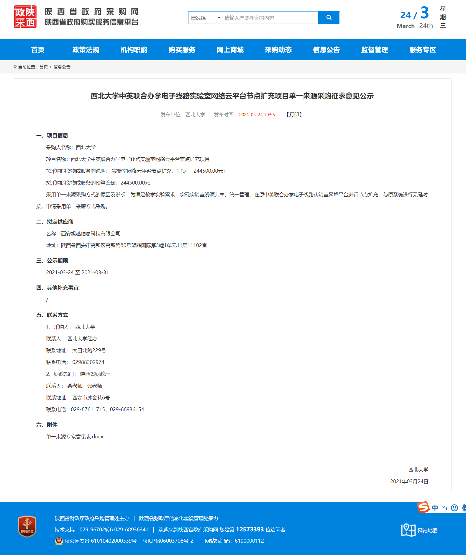 广发体育中英联合办学电子线路实验室网络云平台节点扩充项目单一来源采购征求意见公示