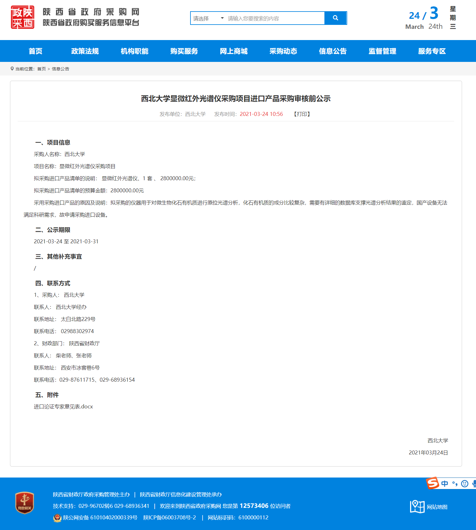 广发体育显微红外光谱仪采购项目进口产品采购审核前公示