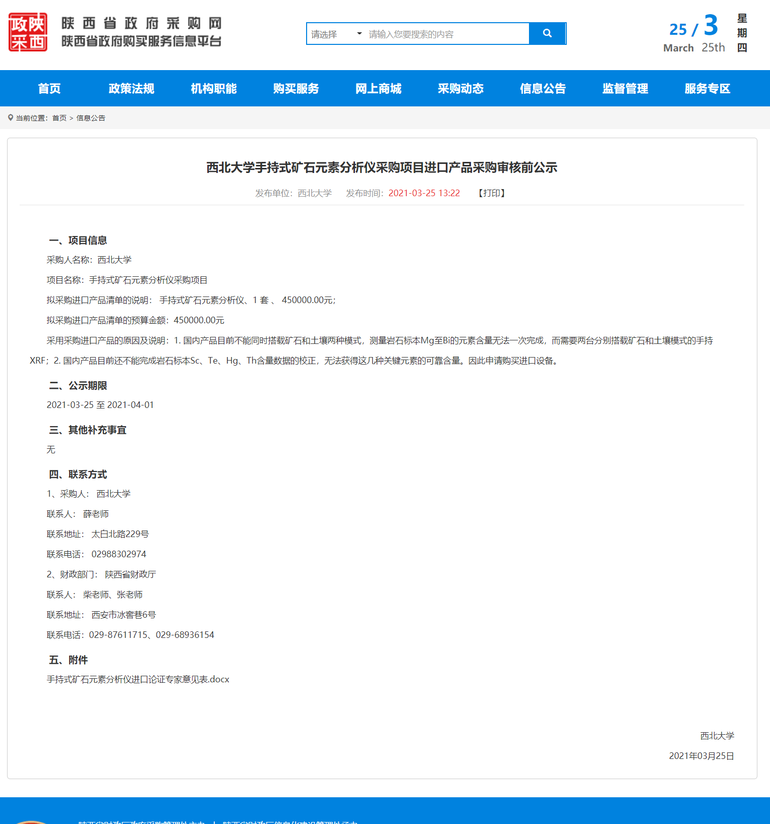 广发体育手持式矿石元素分析仪采购项目进口产品采购审核前公示