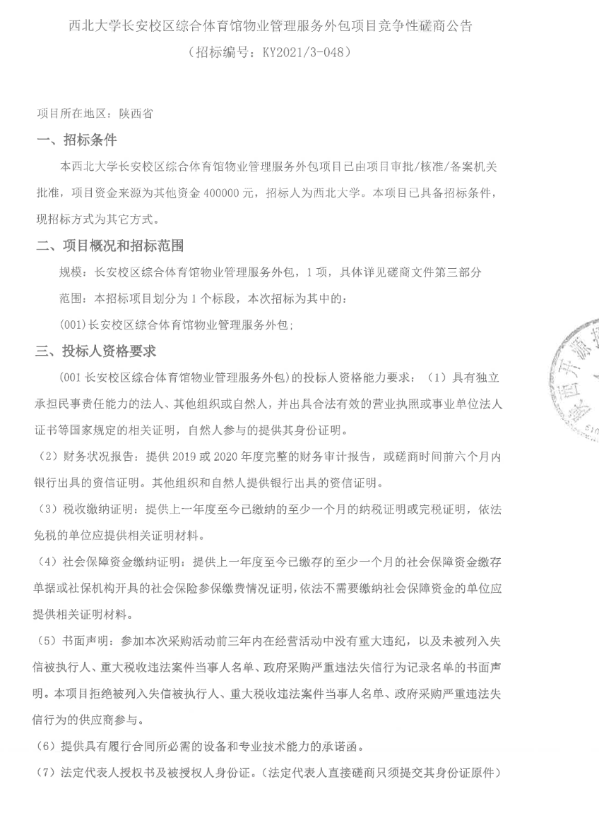 广发体育长安校区综合体育馆物业管理服务外包项目竞争性磋商公告