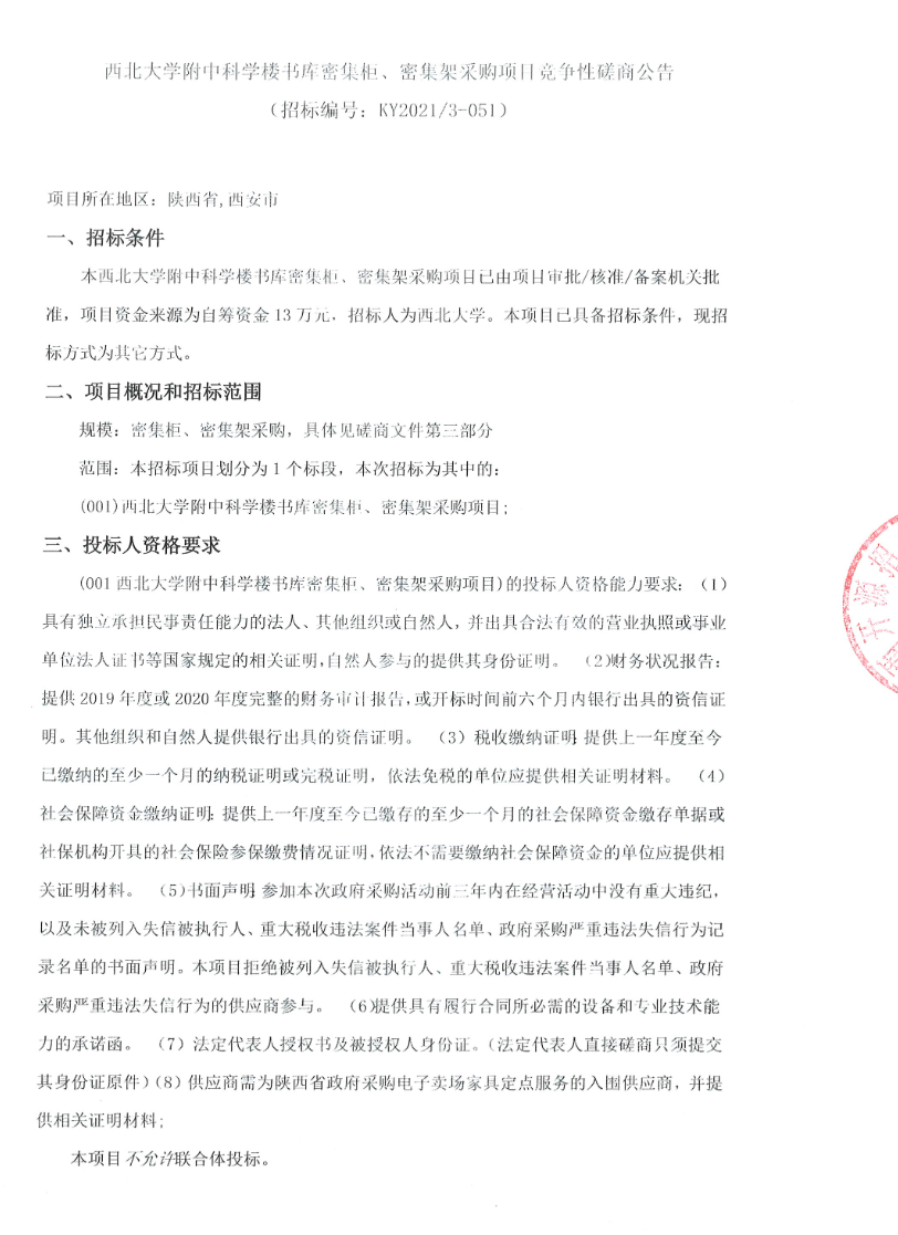 广发体育附中科学楼书库密集柜、密集架采购项目竞争性磋商公告