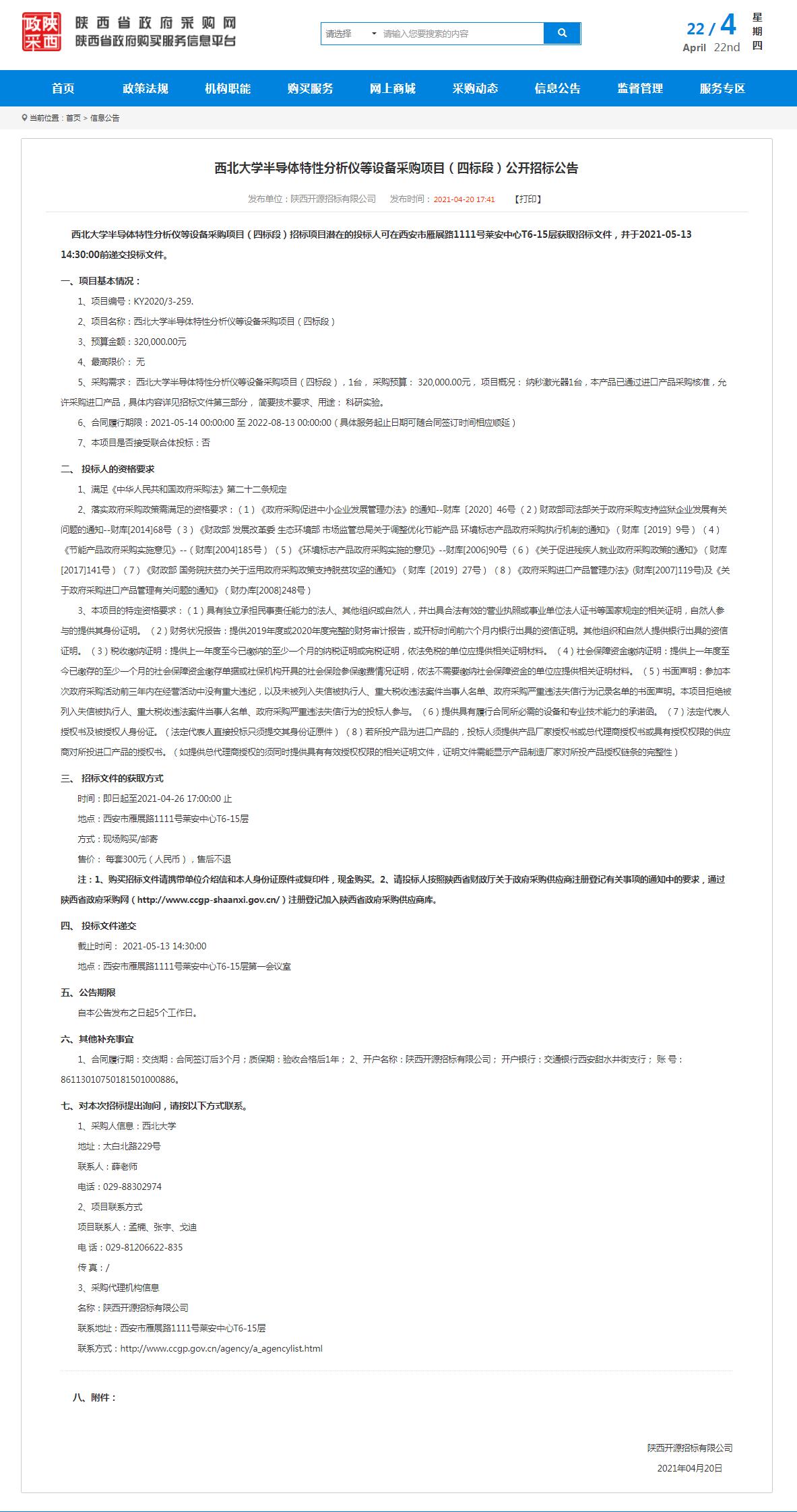广发体育半导体特性分析仪等设备采购项目(四标段)公开招标公告