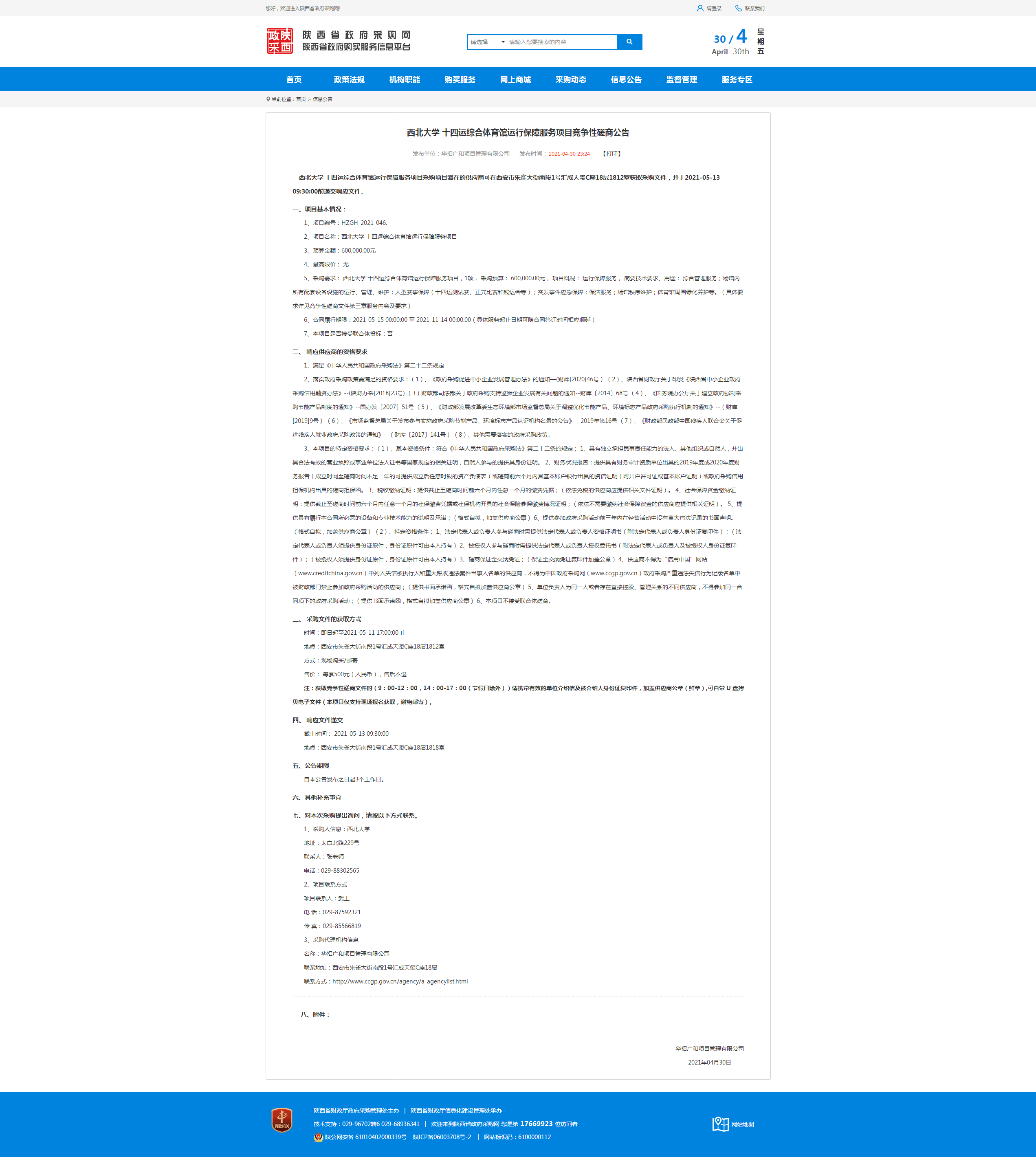 广发体育十四运综合体育馆运行保障服务项目竞争性磋商公告
