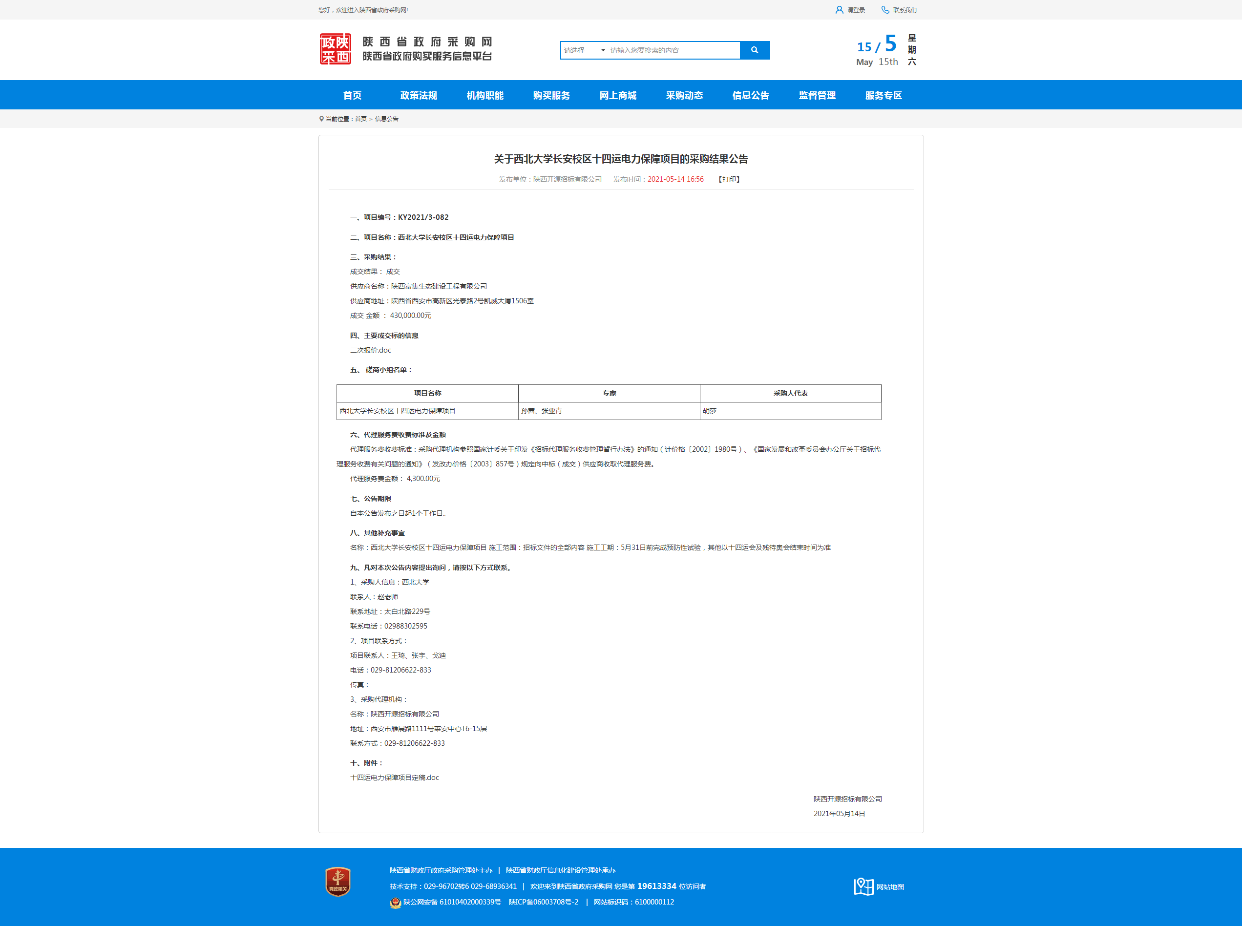 关于广发体育长安校区十四运电力保障项目的采购结果公告