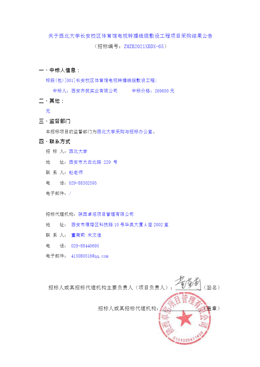 关于广发体育长安校区体育馆电视转播线缆敷设工程项目采购结果公告