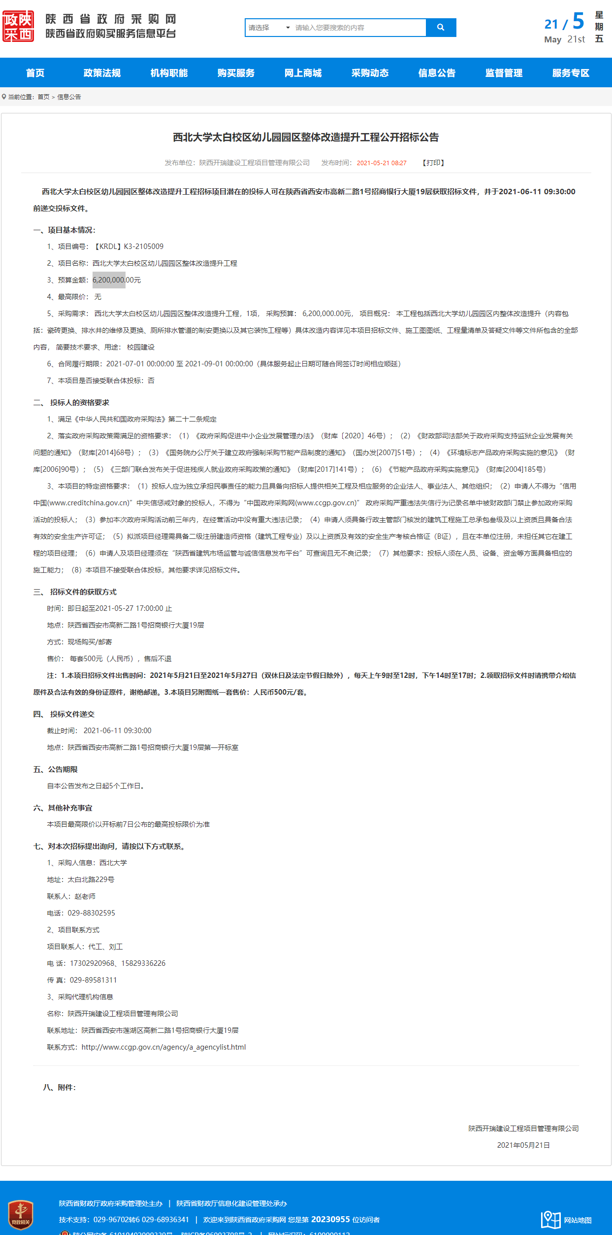 广发体育太白校区幼儿园园区整体改造提升工程公开招标公告