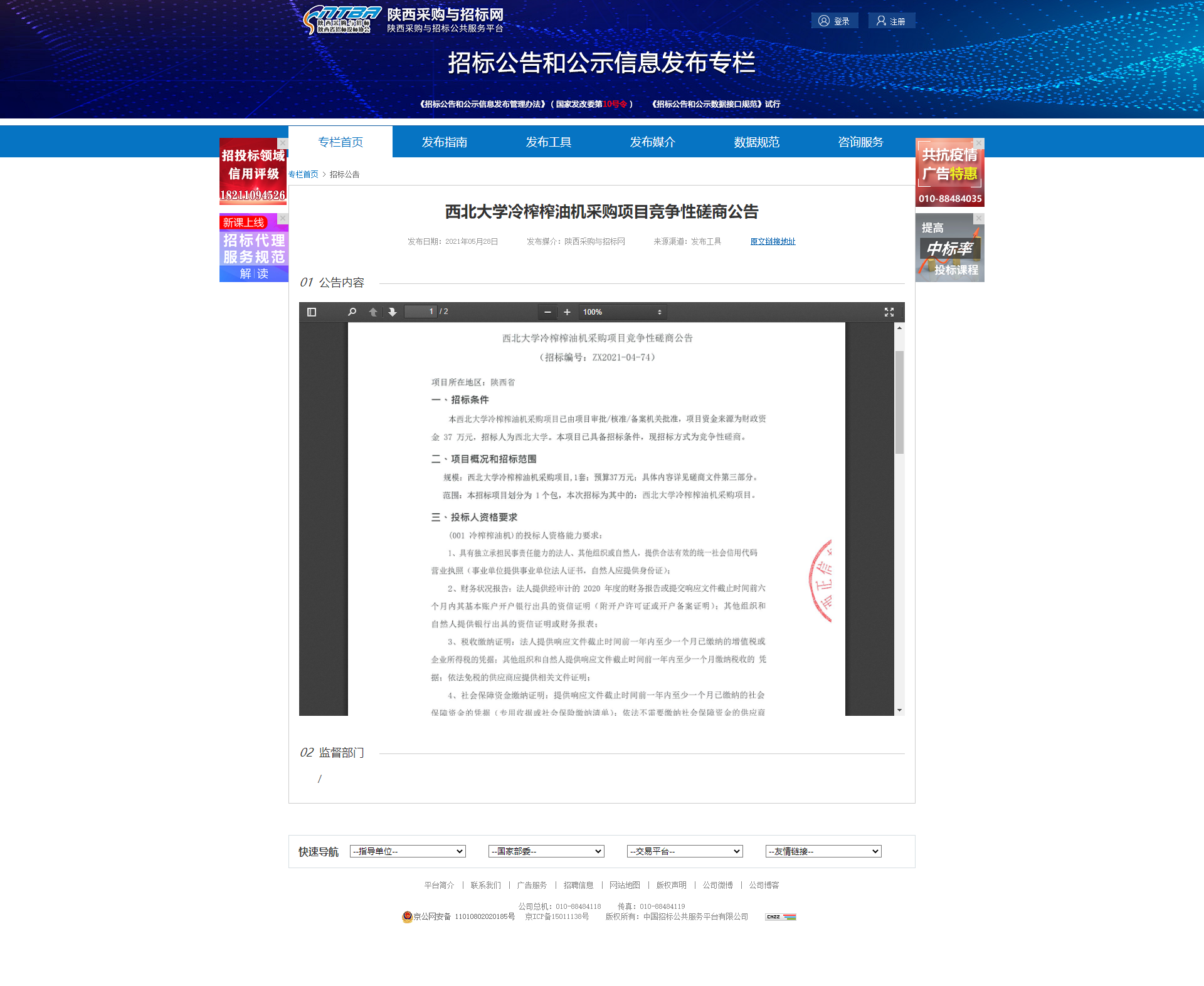 广发体育冷榨榨油机采购项目竞争性磋商公告 作者: 编辑:薛利娟 时间:2021-05-28 原公告地址:http://bulletin.sntba.com/biddingBulletin/2021-05-28/302428.html