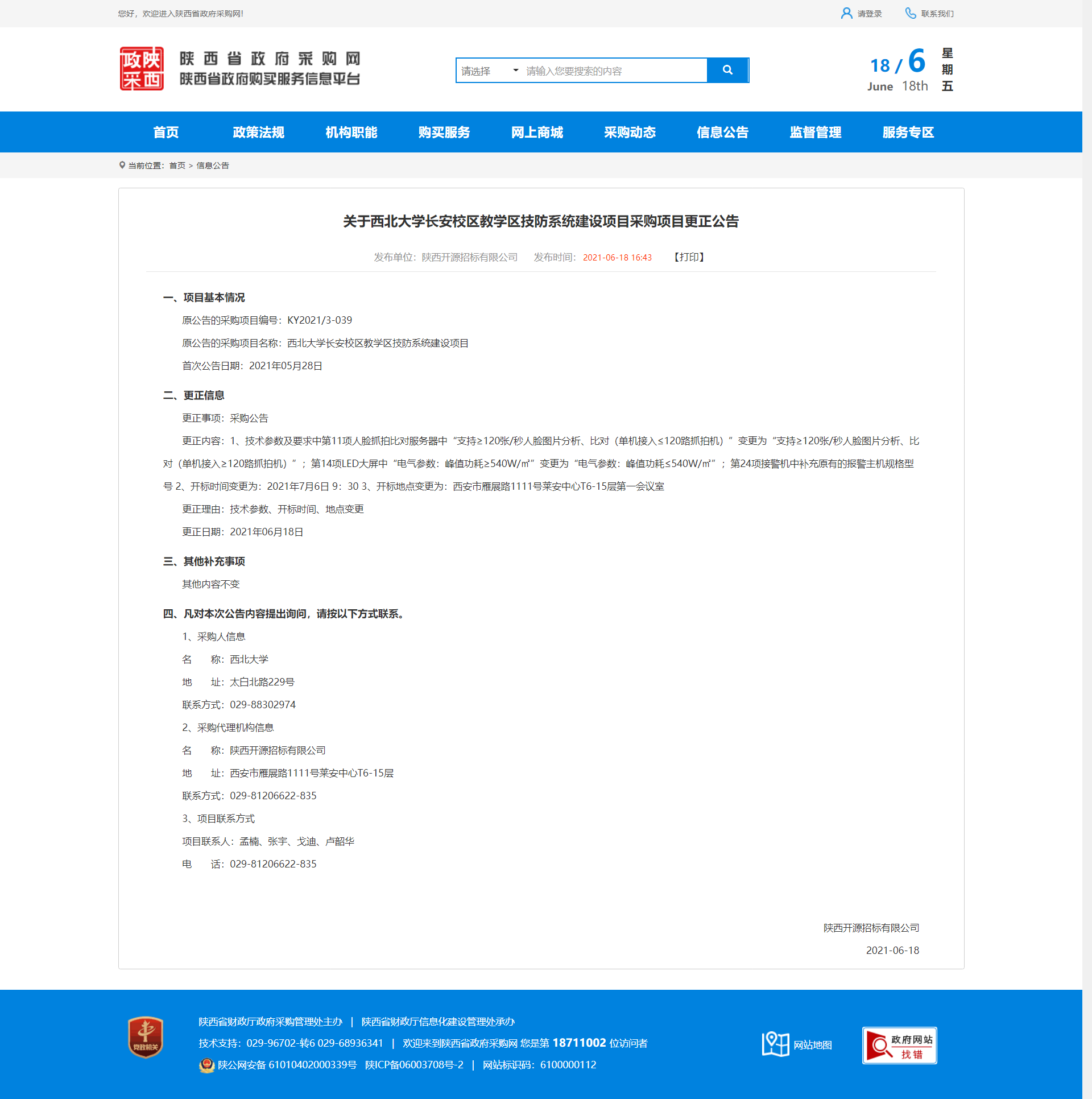 关于广发体育长安校区教学区技防系统建设项目采购项目更正公告 作者: 编辑:采购与招标办公室 时间:2021-06-18 原公告地址:http://www.ccgp-shaanxi.gov.cn/notice/noticeDetail.do?noticeguid=8a85be3478a59799017a1e3c725d50d9