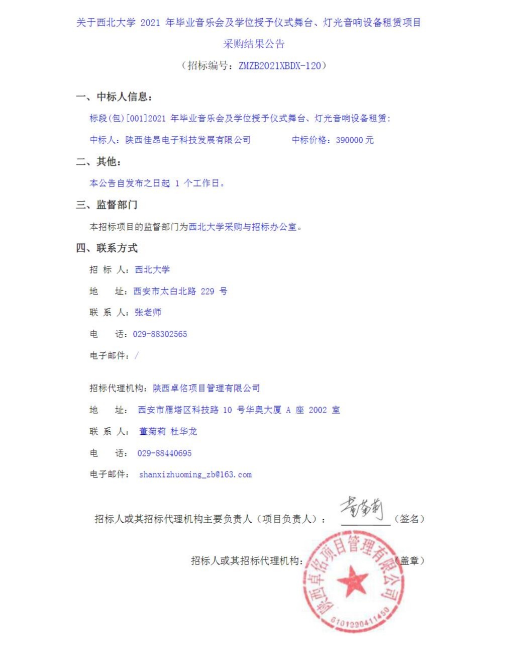 关于广发体育2021年毕业音乐会及学位授予仪式舞台、灯光音响设备租赁项目采购结果公告