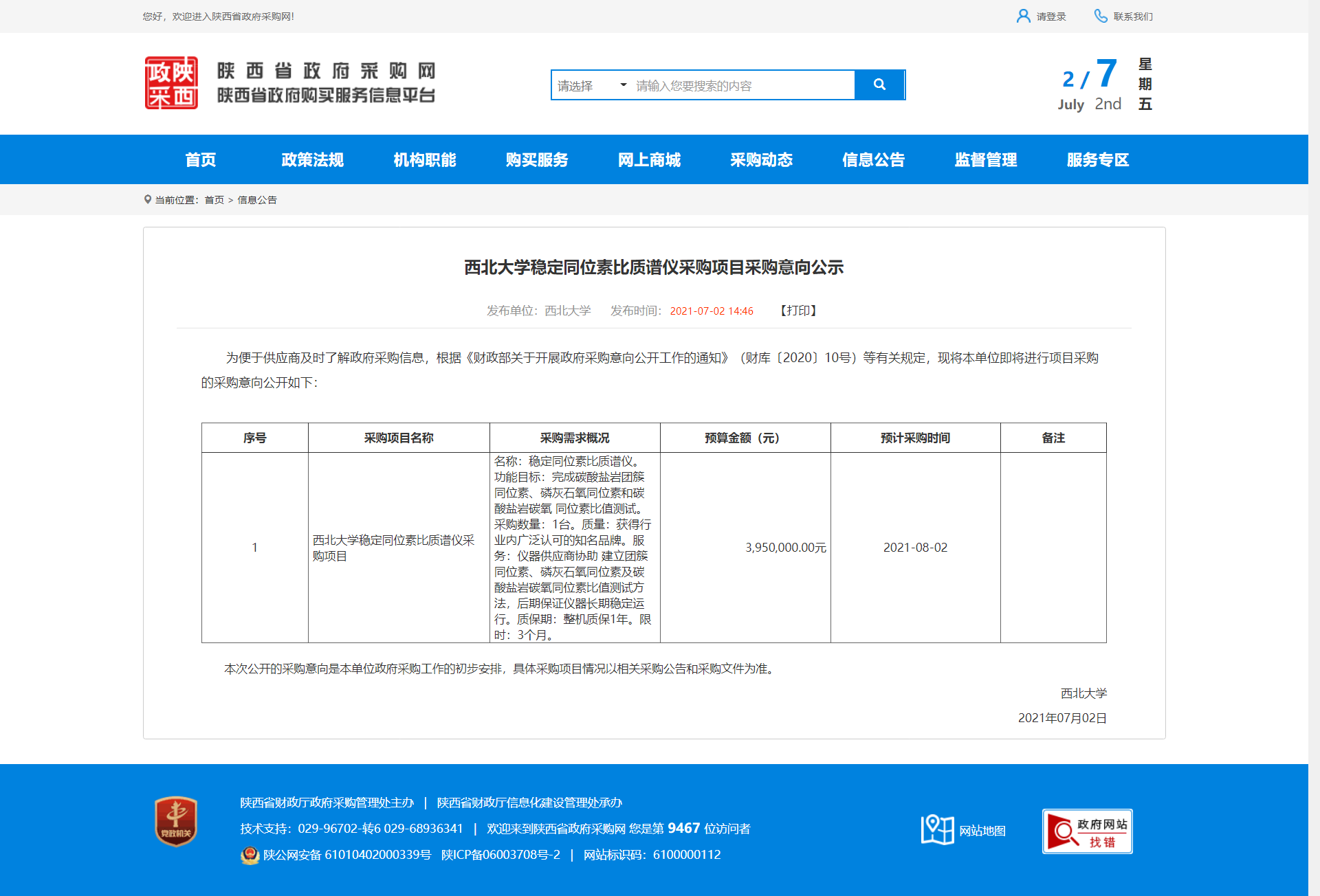 广发体育稳定同位素比质谱仪采购项目采购意向公示 作者: 编辑:采购与招标办公室 时间:2021-07-02 原公告地址:http://www.ccgp-shaanxi.gov.cn/notice/noticeDetail.do?noticeguid=8a85be317a51dcbc017a65e4a5e21daf