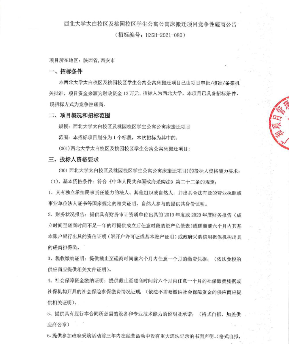 广发体育太白校区及桃园校区学生公寓公寓床搬迁项目
