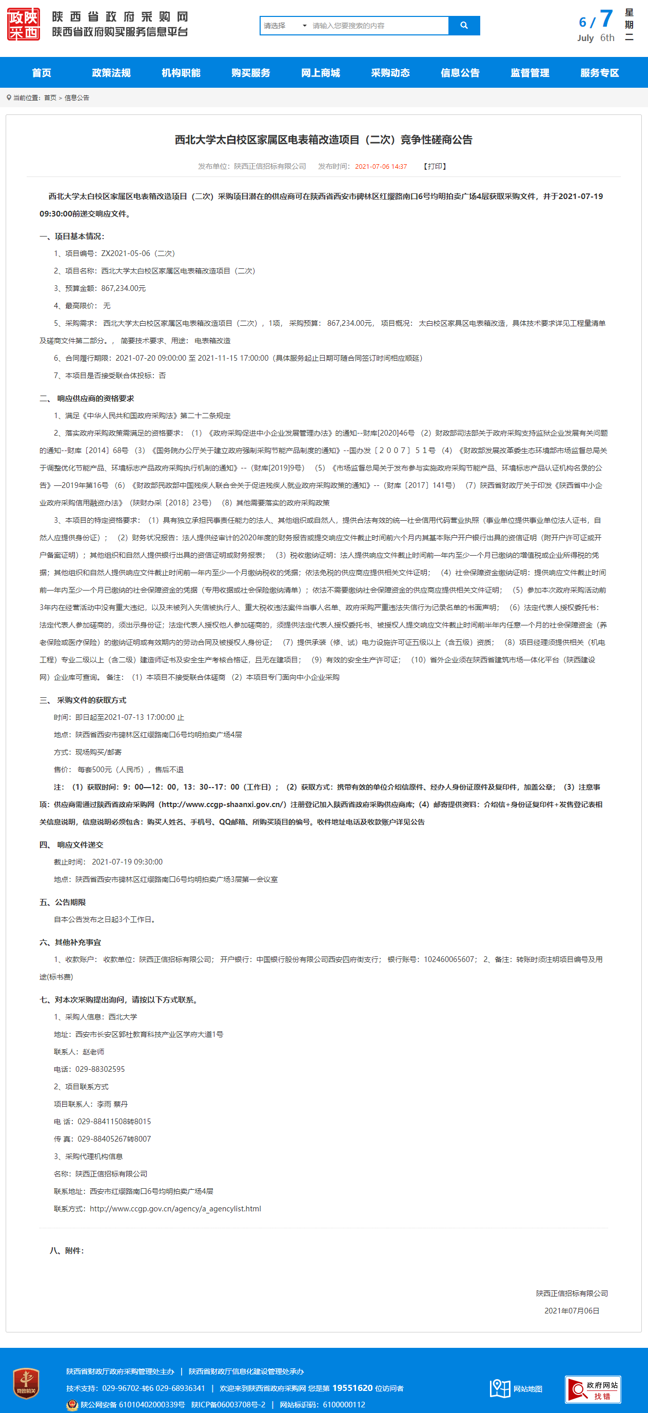 广发体育太白校区家属区电表箱改造项目(二次)竞争性磋商公告