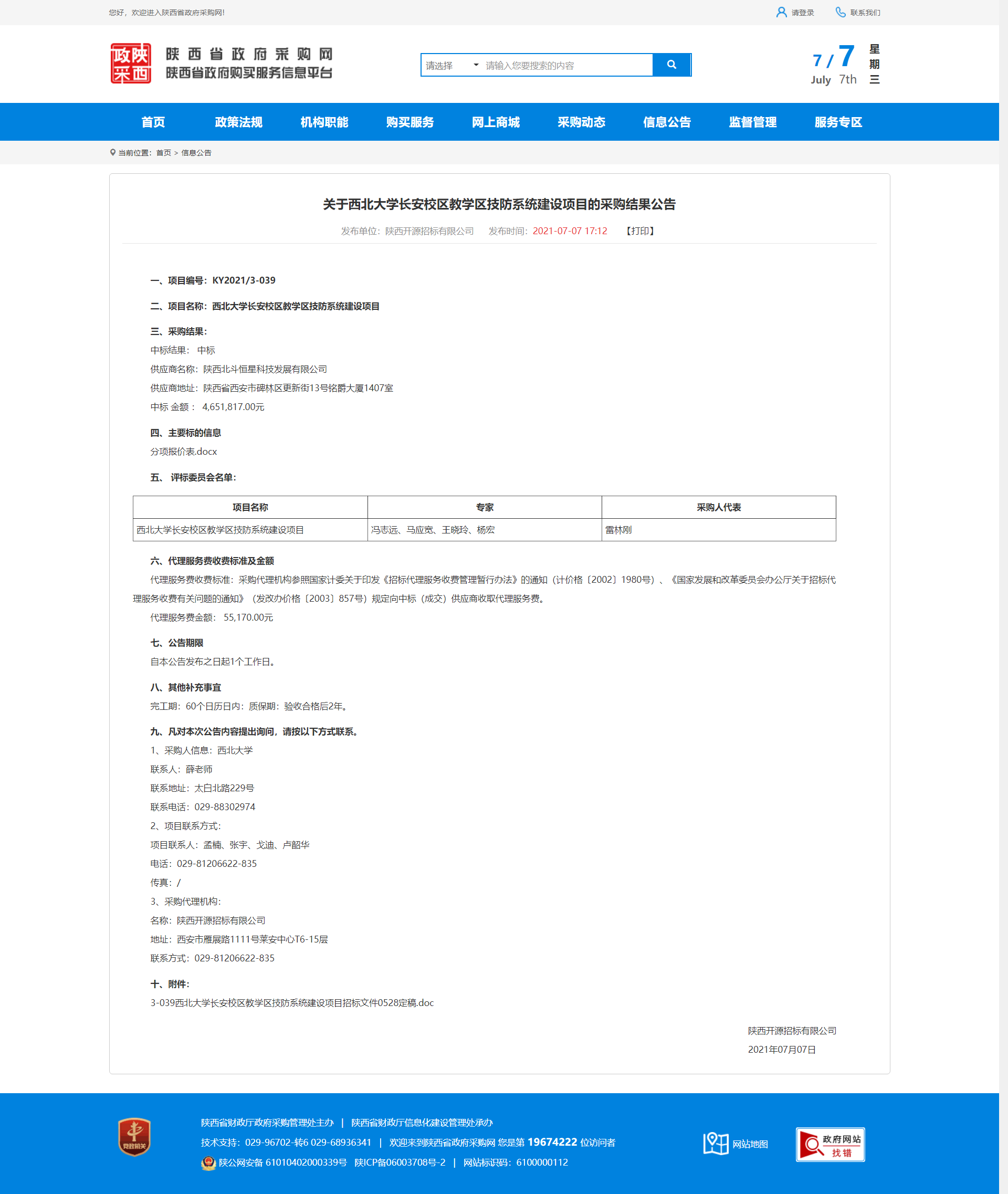 关于广发体育长安校区教学区技防系统建设项目的采购结果公告 作者: 编辑:采购与招标办公室 时间:2021-07-07 原公告地址:http://www.ccgp-shaanxi.gov.cn/notice/noticeDetail.do?noticeguid=8a85be337a79620e017a7fff10cb41ef