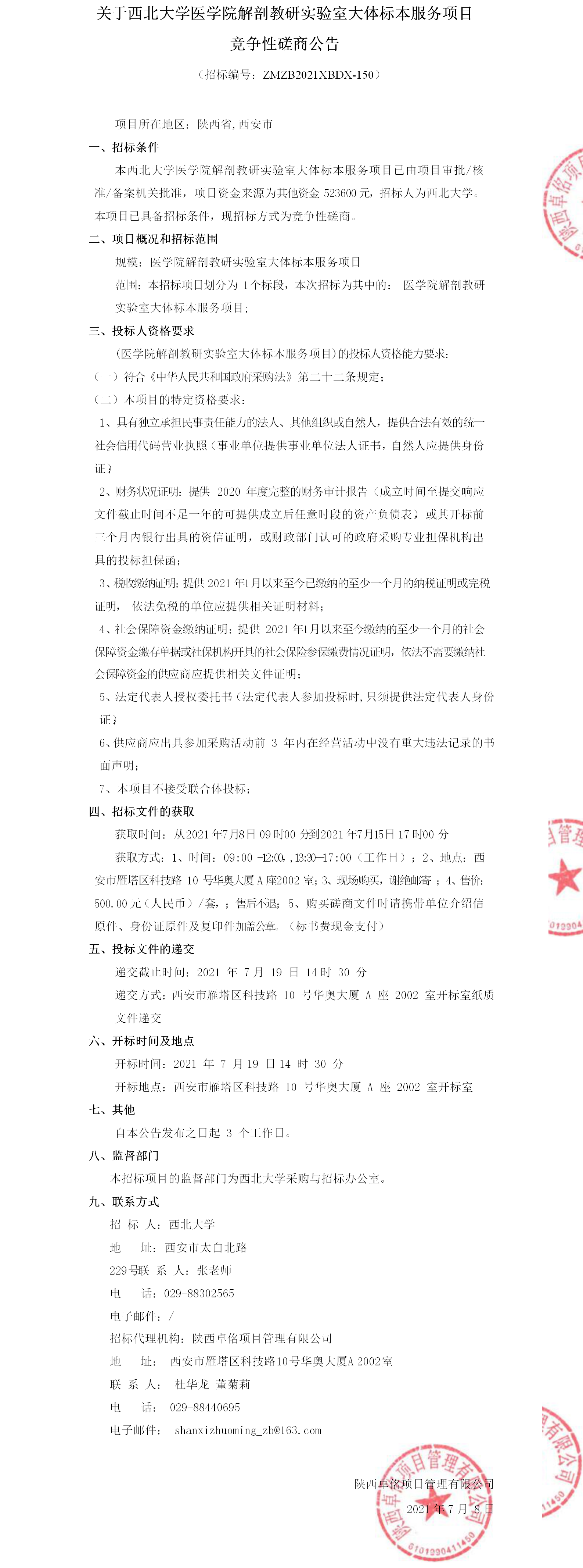 关于广发体育医学院解剖教研实验室大体标本服务项目竞争性磋商公告