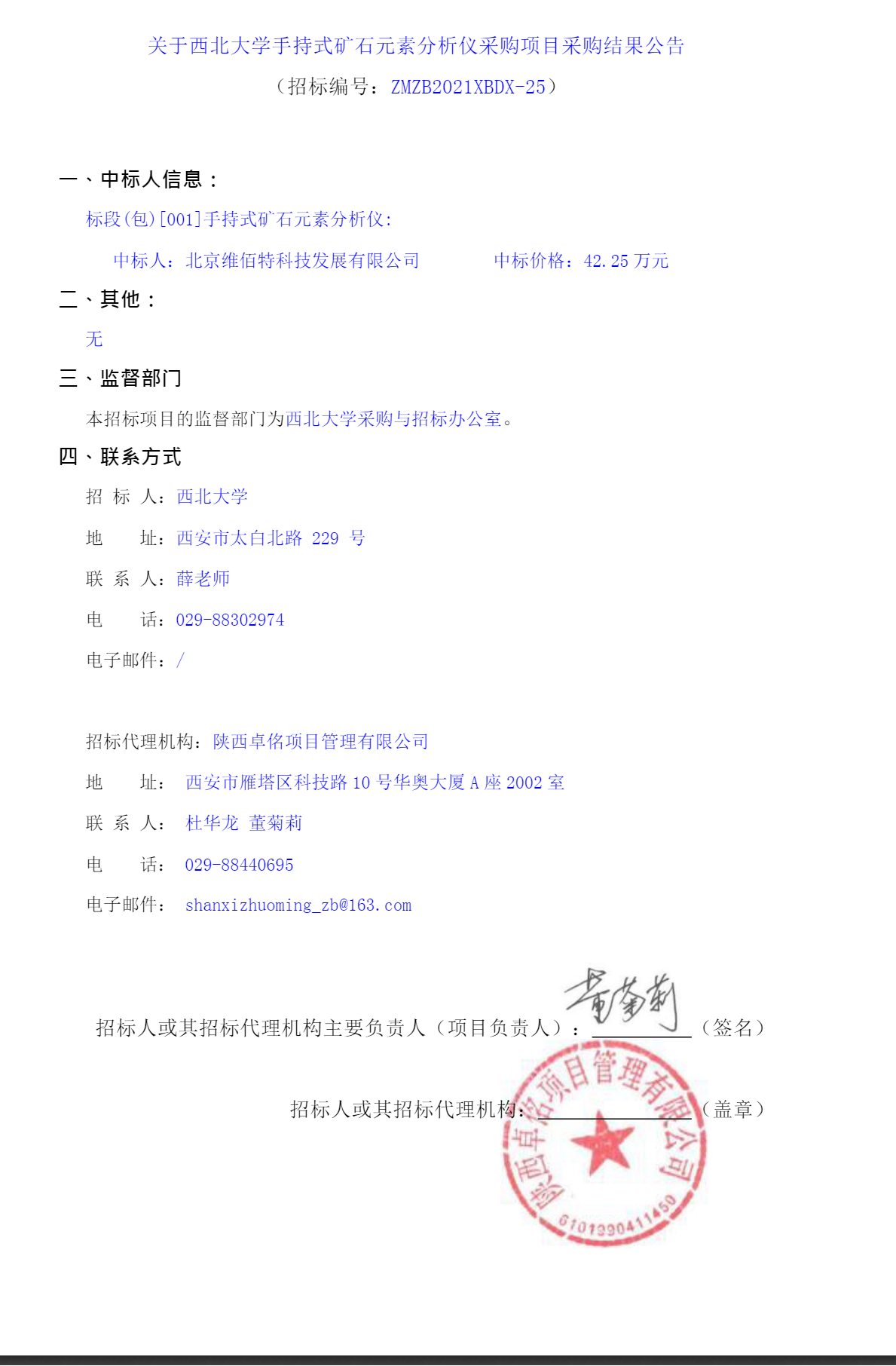 关于广发体育手持式矿石元素分析仪采购项目采购结果公告