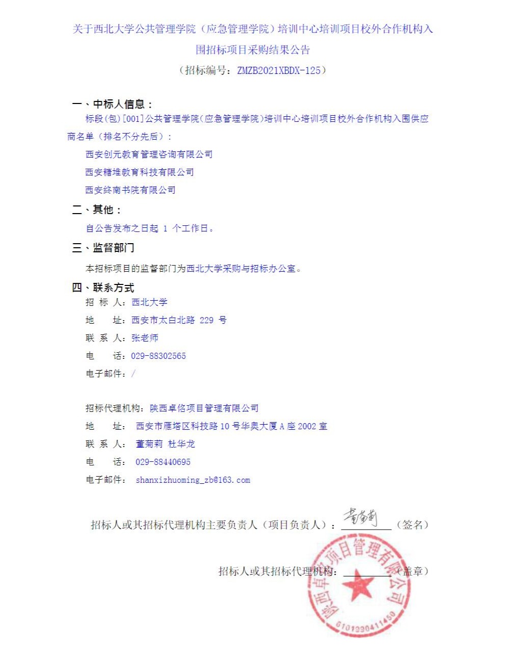 关于广发体育公共管理学院(应急管理学院)培训中心培训项目校外合作机构入围招标项目采购结果公告