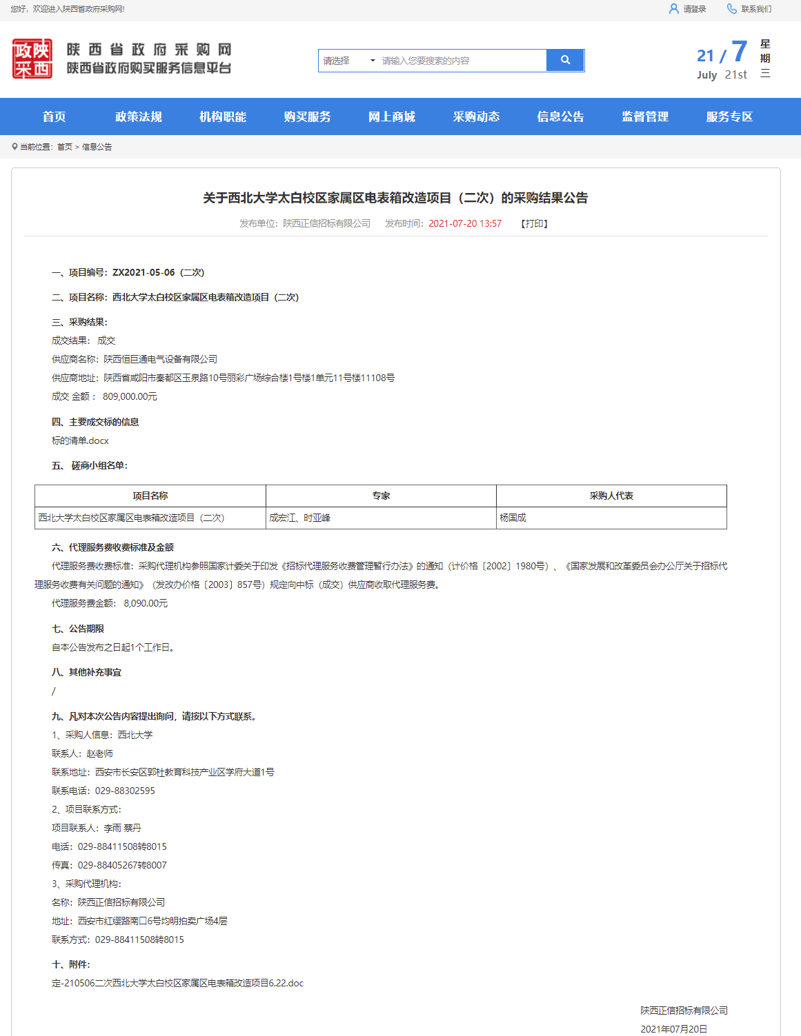 关于广发体育太白校区家属区电表箱改造项目(二次)的采购结果公告