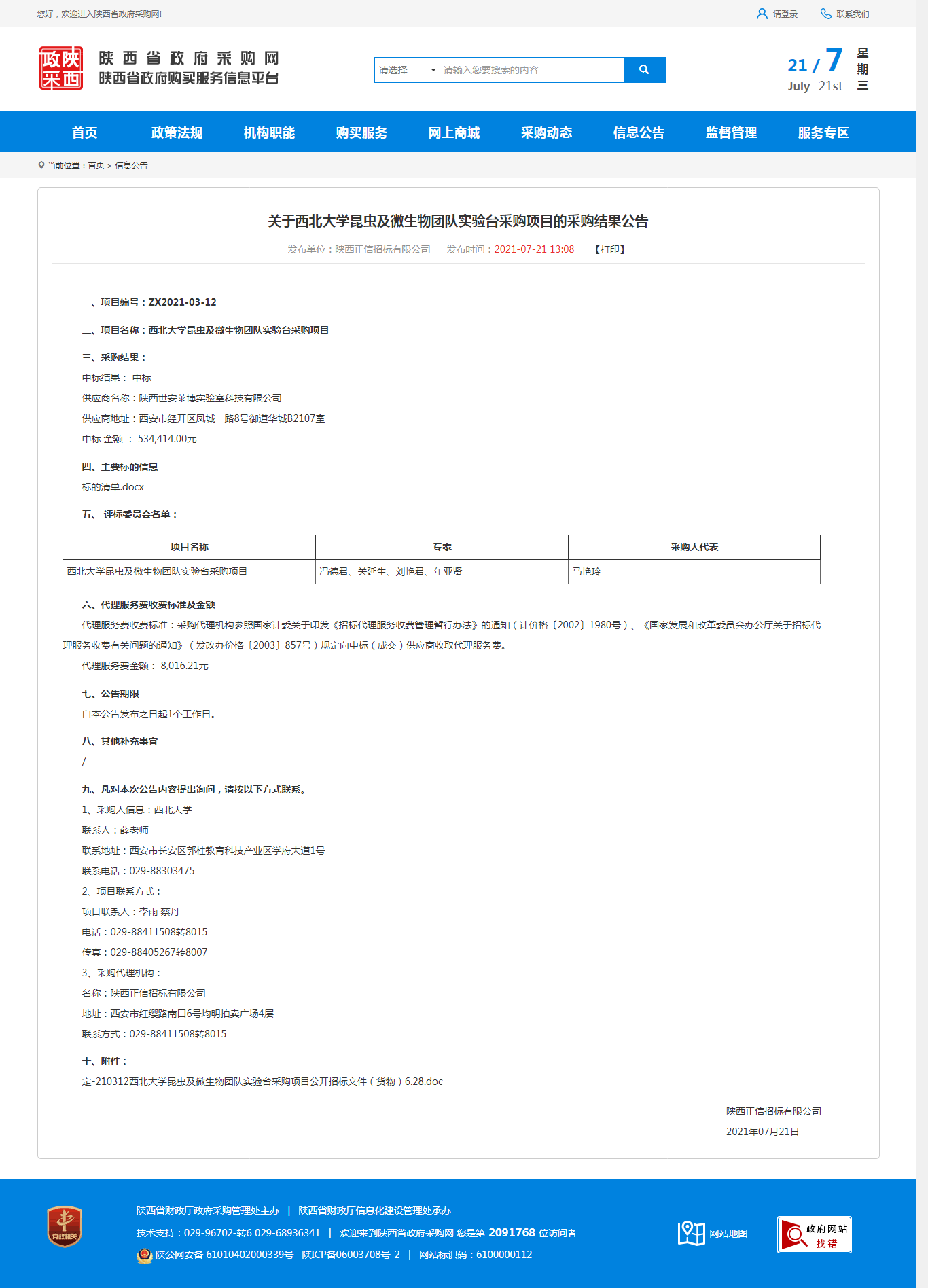 关于广发体育昆虫及微生物团队实验台采购项目的采购结果公告 作者: 编辑:采购与招标办公室 时间:2021-07-21 原公告地址:http://www.ccgp-shaanxi.gov.cn/notice/noticeDetail.do?noticeguid=8a85be347a795e58017ac68e08ff1739