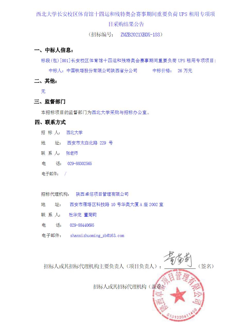 关于广发体育长安校区体育馆十四运和残特奥会赛事期间重要负荷UPS租用专项项目采购结果公告