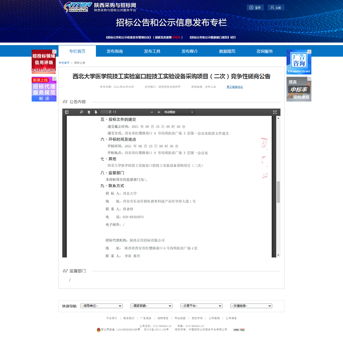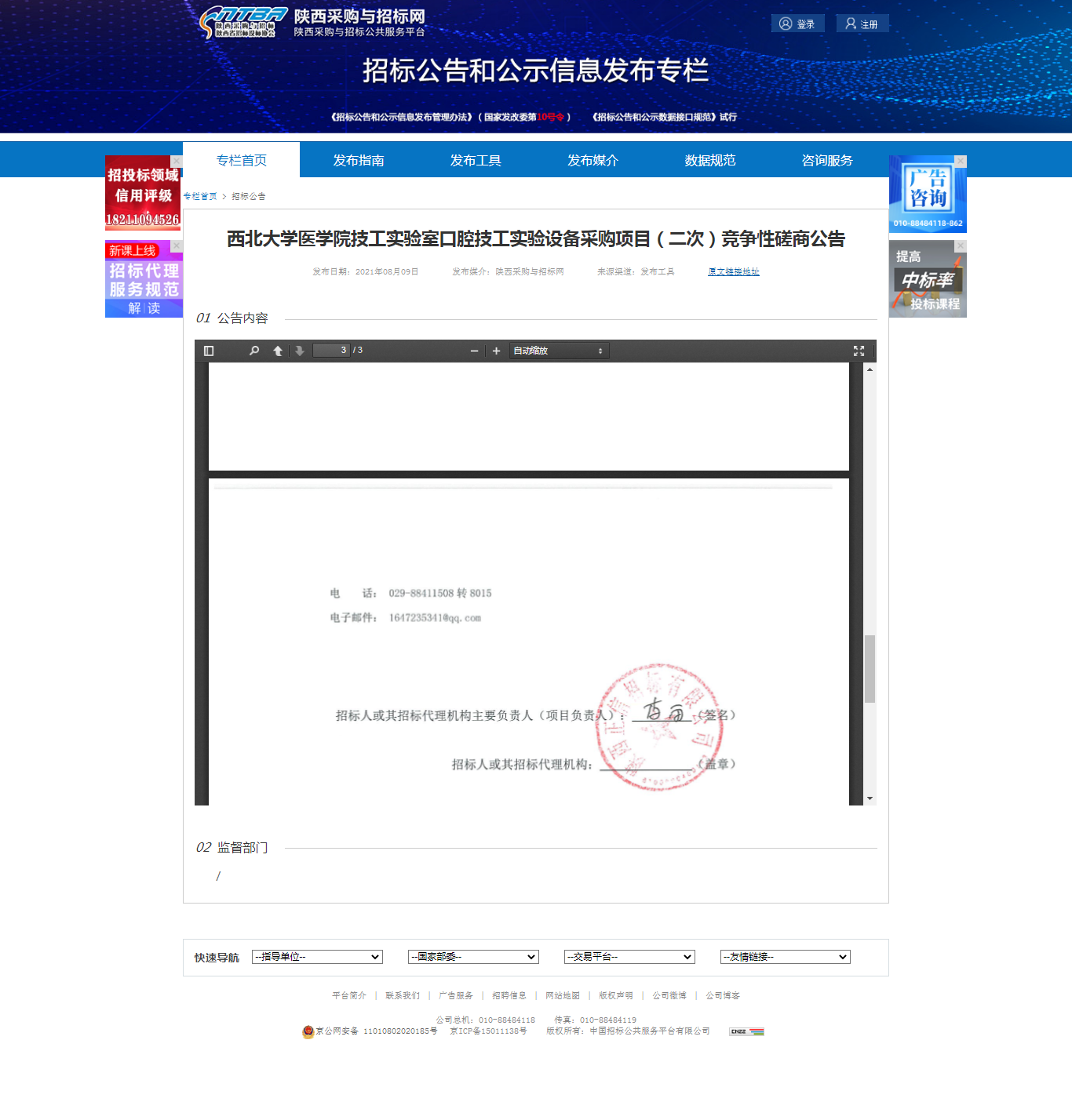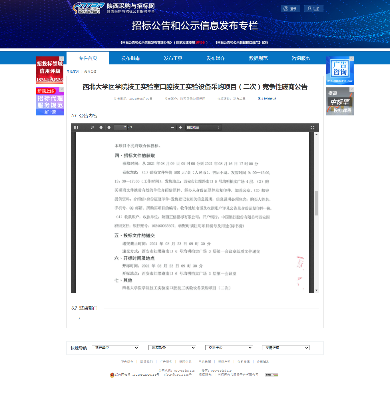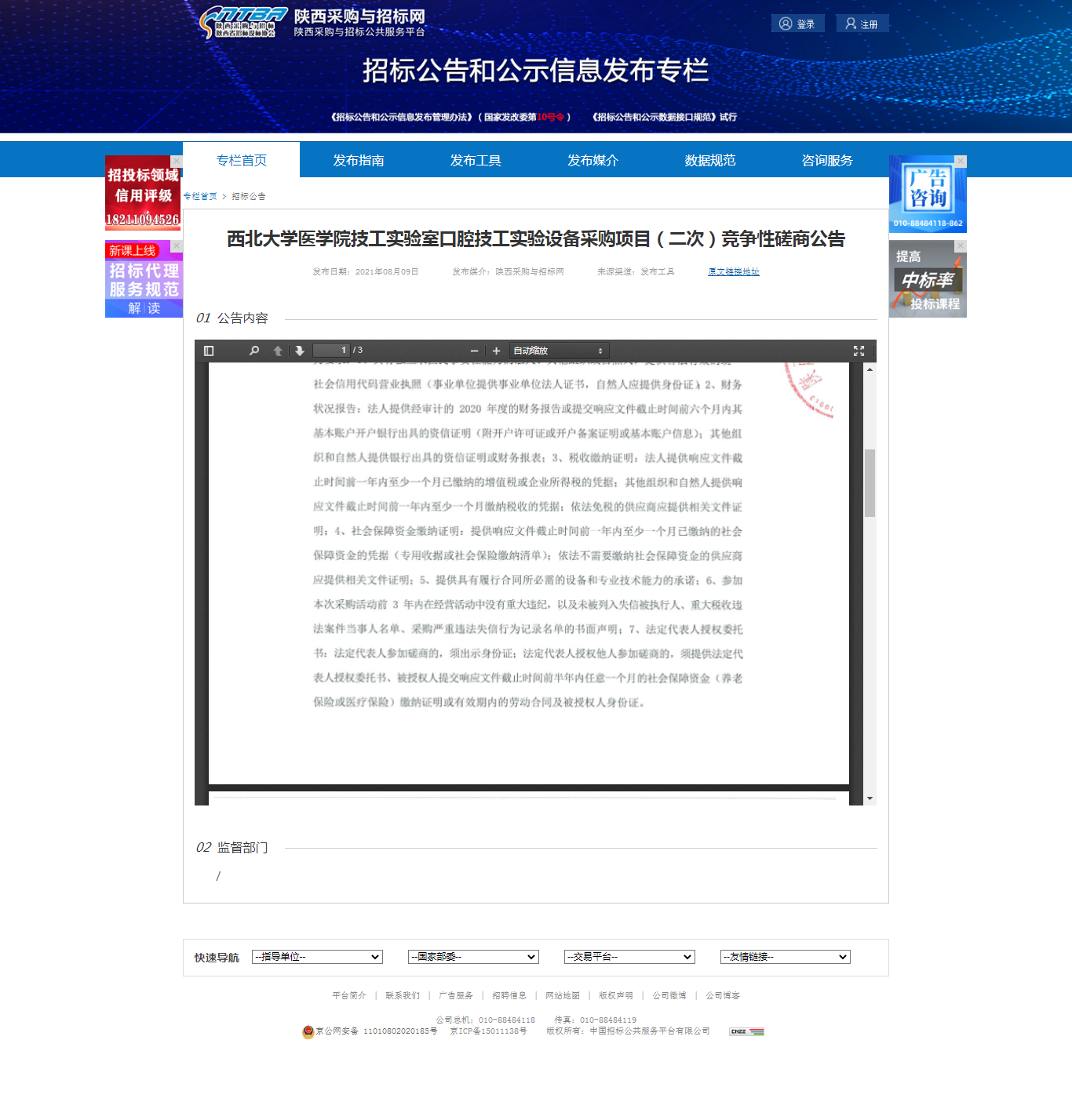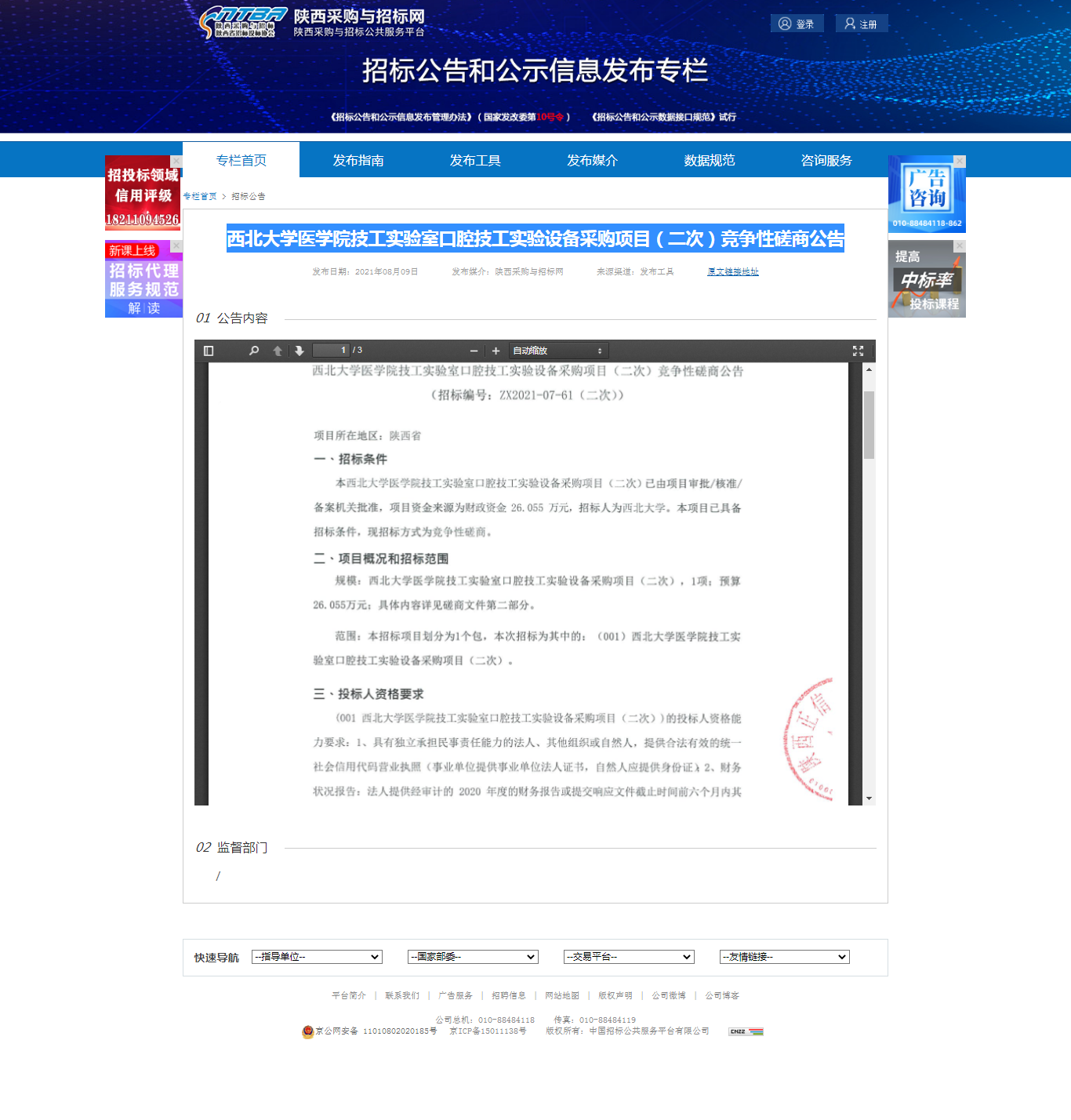 广发体育医学院技工实验室口腔技工实验设备采购项目(二次)竞争性磋商公告 作者: 编辑:采购与招标办公室 时间:2021-08-09 原公告地址:http://bulletin.sntba.com/biddingBulletin/2021-08-09/328931.html