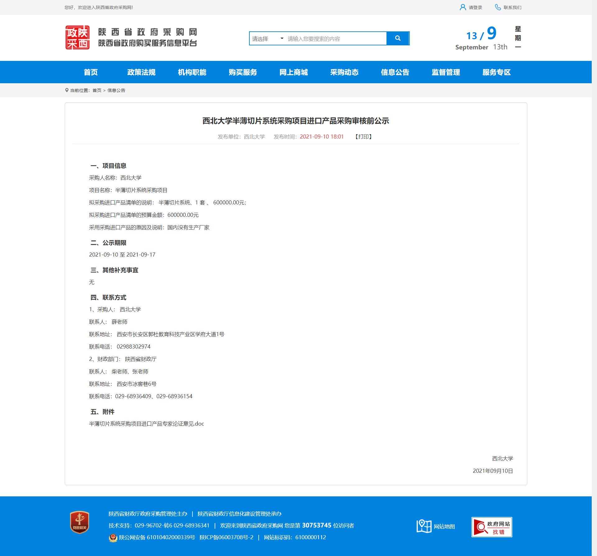 广发体育半薄切片系统采购项目进口产品采购审核前公示 作者: 编辑:采购与招标办公室 时间:2021-09-13 原公告地址:http://www.ccgp-shaanxi.gov.cn/notice/noticeDetail.do?noticeguid=8a85be347bc00296017bcf143b49100c