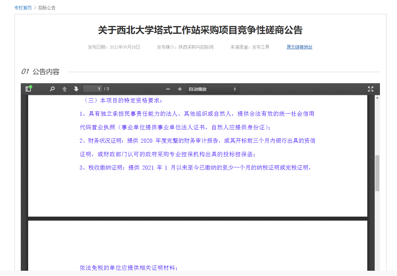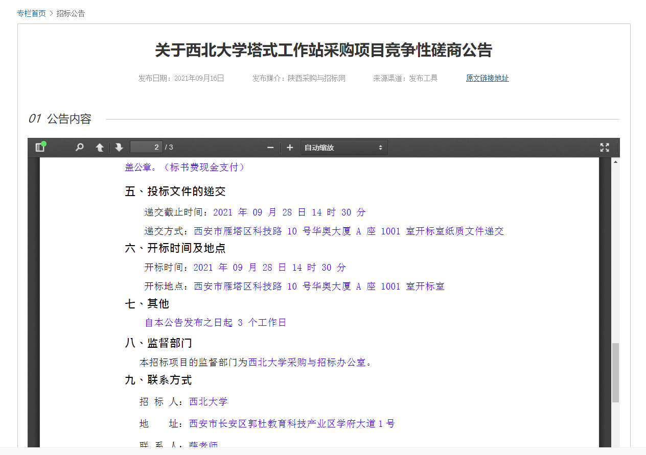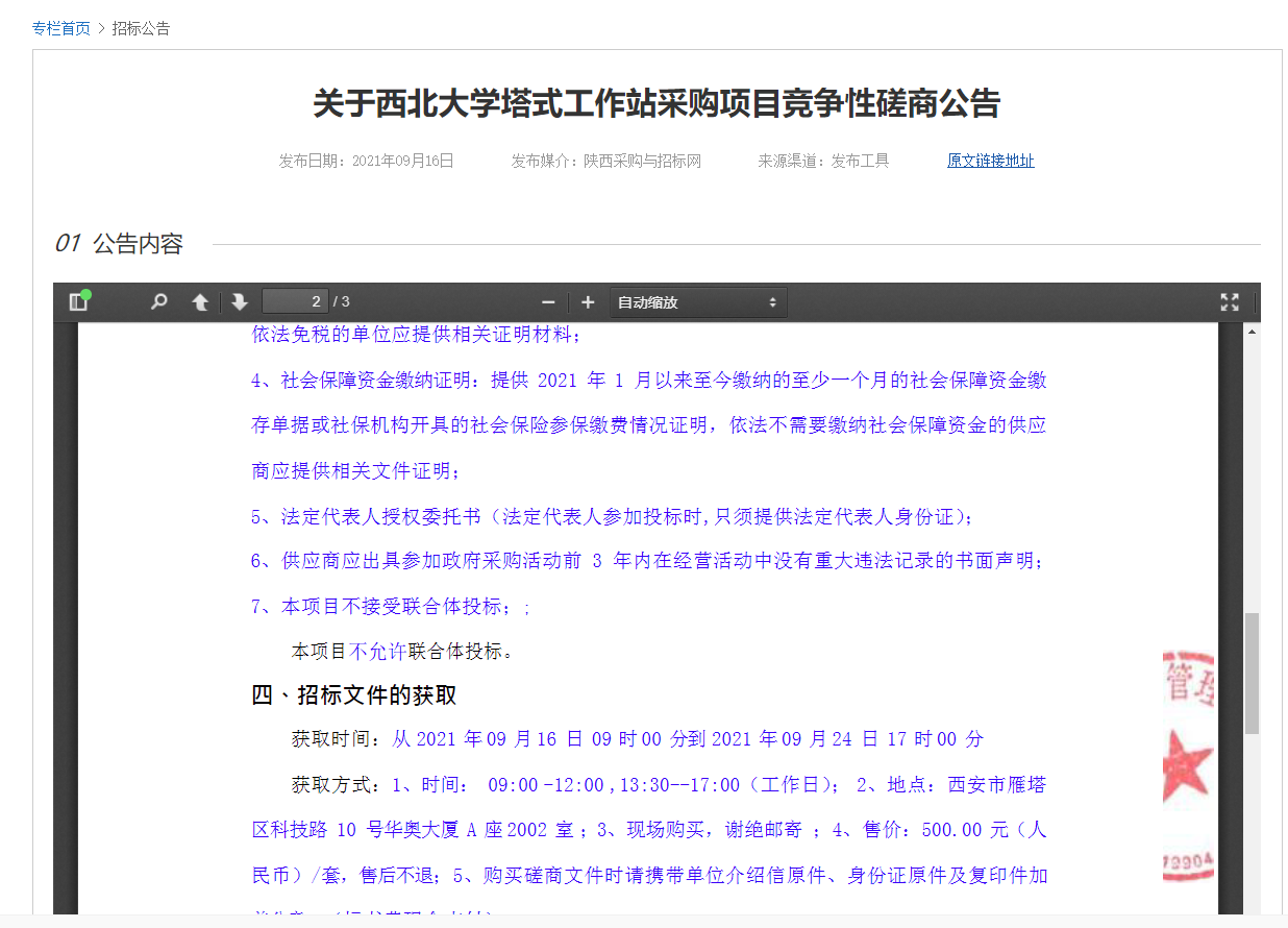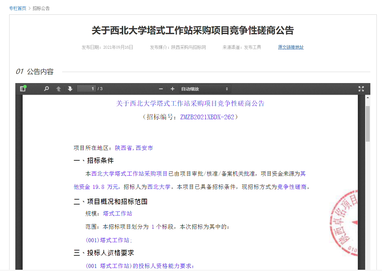 关于广发体育塔式工作站采购项目竞争性磋商公告 作者: 编辑:采购与招标办公室 时间:2021-09-17 原公告地址:http://bulletin.sntba.com/biddingBulletin/2021-09-16/343853.html