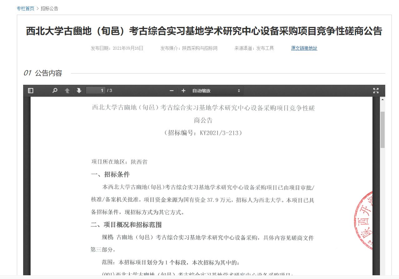 广发体育古豳地(旬邑)考古综合实习基地学术研究中心设备采购项目竞争性磋商公告 作者: 编辑:采购与招标办公室 时间:2021-09-17 原公告地址:http://bulletin.sntba.com/biddingBulletin/2021-09-16/343879.html