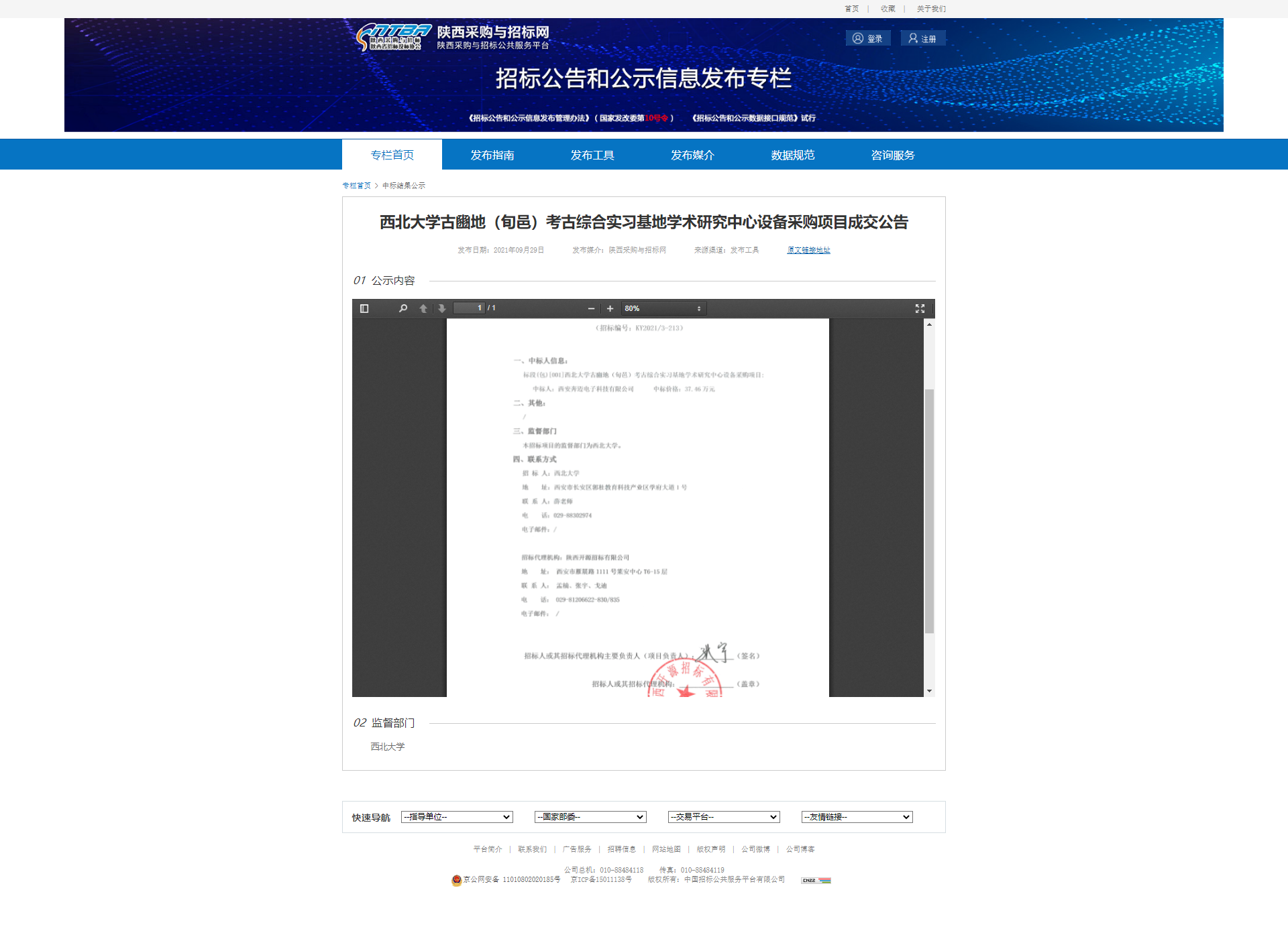 广发体育古豳地(旬邑)考古综合实习基地学术研究中心设备采购项目成交公告 作者: 编辑:采购与招标办公室 时间:2021-09-29 原公告地址:http://bulletin.sntba.com/resultBulletin/2021-09-29/348615.html