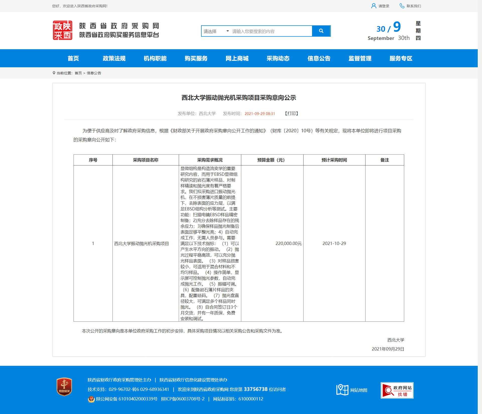 广发体育振动抛光机采购项目采购意向公示 作者: 编辑:采购与招标办公室 时间:2021-09-30 原公告地址:http://www.ccgp-shaanxi.gov.cn/notice/noticeDetail.do?noticeguid=8a85be337c20d0b4017c2ef28a5109d6