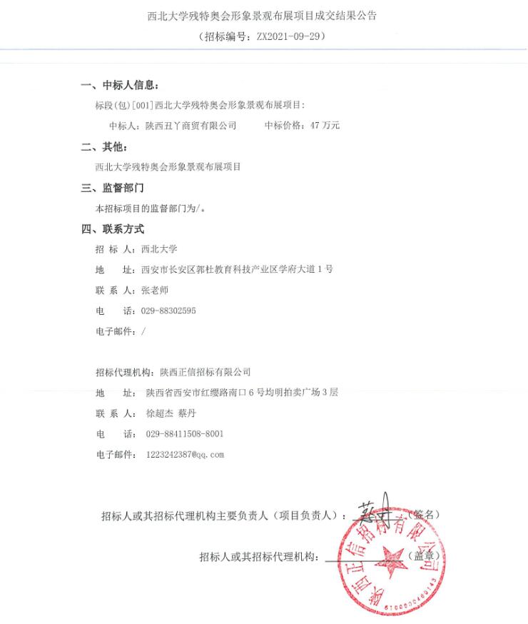关于广发体育残特奥会形象景观布展项目成交结果公告
