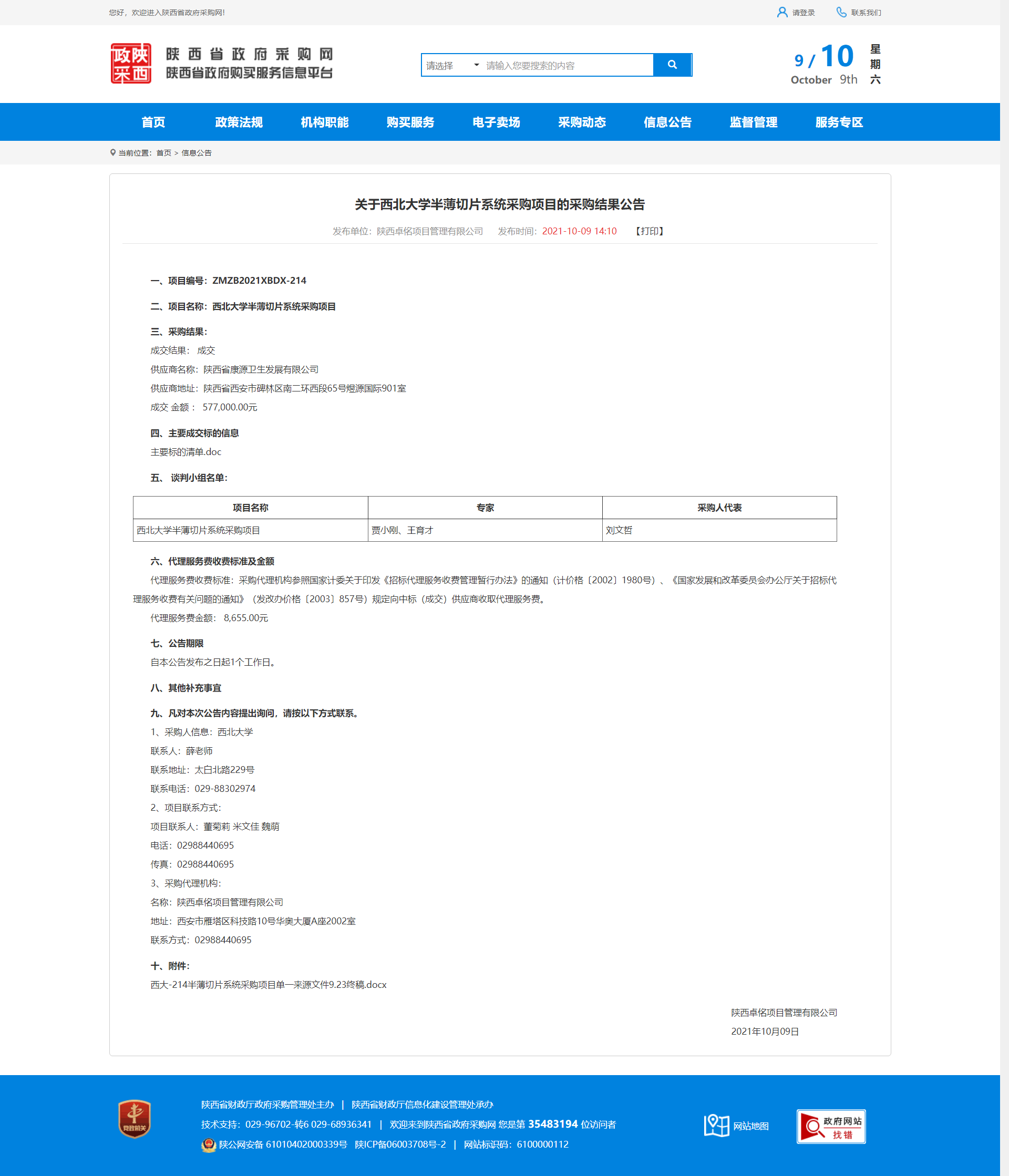 关于广发体育半薄切片系统采购项目的采购结果公告 作者: 编辑:采购与招标办公室 时间:2021-10-09 原公告地址:http://www.ccgp-shaanxi.gov.cn/notice/noticeDetail.do?noticeguid=8a85be337c20d0b4017c63ab46ca5540