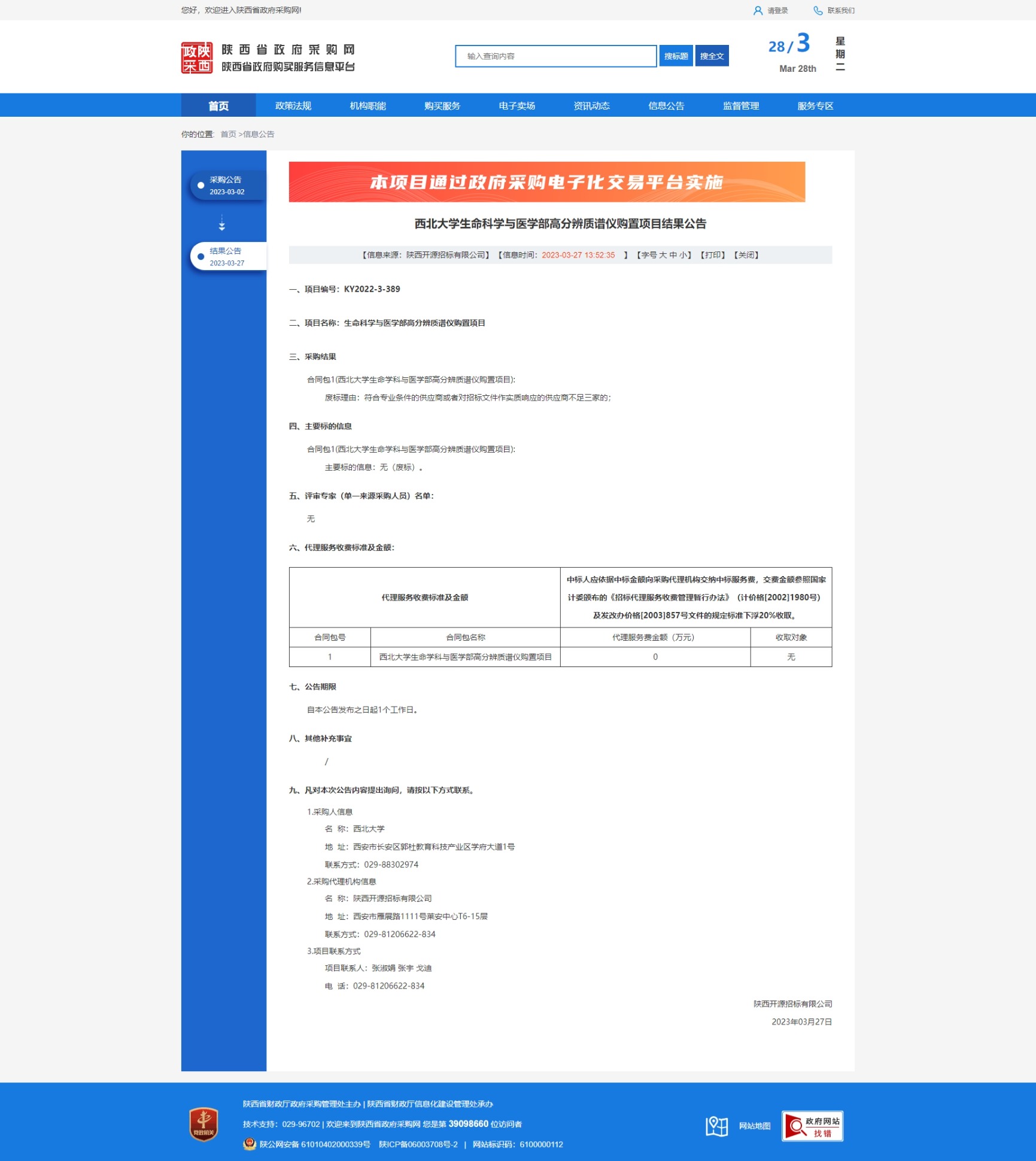 广发体育生命科学与医学部高分辨质谱仪购置项目结果公告 作者: 编辑:采购与招标办公室 时间:2023-03-28 原公告链接:http://www.ccgp-shaanxi.gov.cn/freecms/site/shaanxi/ggxx/info/2023/8a69c402865ce80c01872194e6bc4269.html?noticeType=001006¬iceId=7bbf6887-cc64-11ed-9a8e-08c0eb20c666