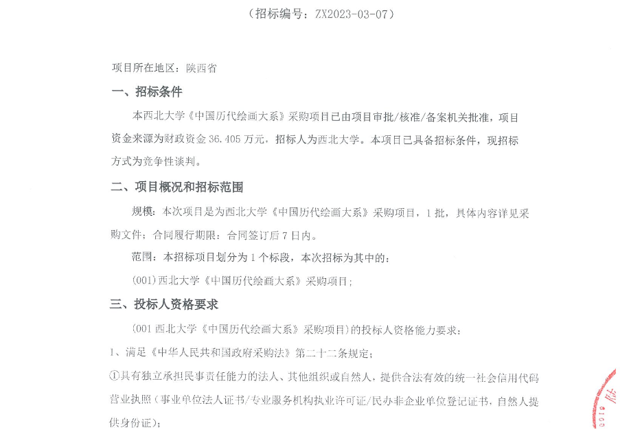 广发体育《中国历代绘画大系》采购项目竞争性谈判公告 作者: 编辑:采购与招标办公室 时间:2023-04-18 原公告链接:http://bulletin.sntba.com/biddingBulletin/2023-04-18/548646.html