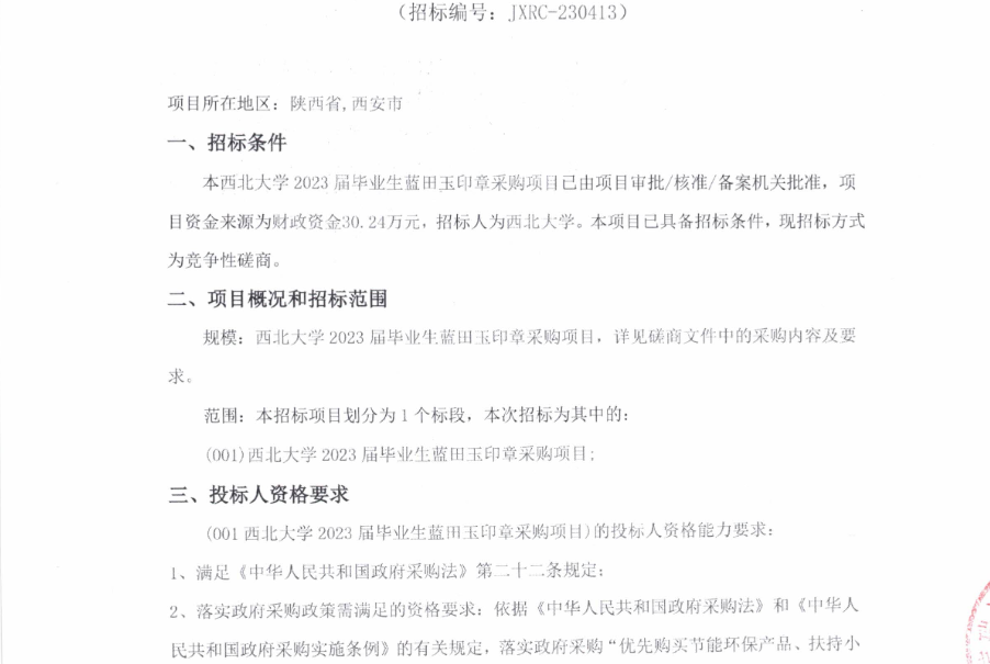 广发体育2023届毕业生蓝田玉印章采购项目竞争性磋商公告 作者: 编辑:采购与招标办公室 时间:2023-04-21 原公告链接:http://bulletin.sntba.com/biddingBulletin/2023-04-21/550306.html