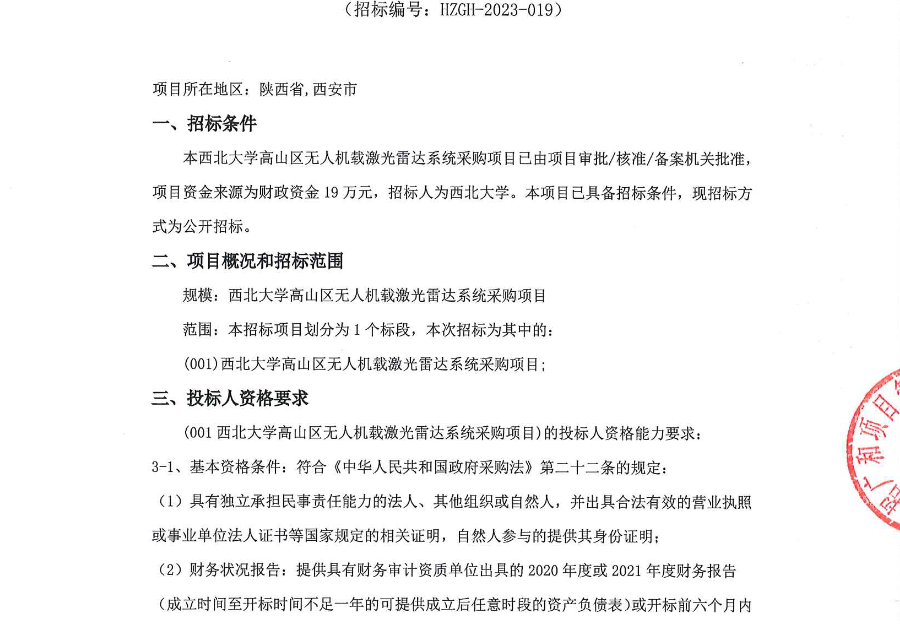 广发体育高山区无人机载激光雷达系统采购项目招标公告 作者: 编辑:采购与招标办公室 时间:2023-06-14 原公告链接:http://bulletin.sntba.com/biddingBulletin/2023-06-14/572031.html