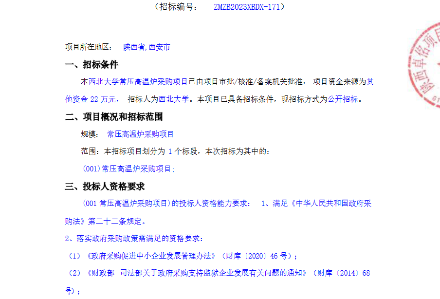 广发体育常压高温炉采购项目公开招标公告 作者: 编辑:采购与招标办公室 时间:2023-07-11 原公告链接:http://bulletin.sntba.com/biddingBulletin/2023-07-10/582742.html
