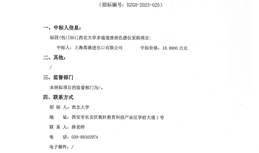 广发体育多通道液相色谱仪采购项目中标结果公示 作者: 编辑:采购与招标办公室 时间:2023-07-14 原公告链接:http://bulletin.sntba.com/resultBulletin/2023-07-14/585694.html
