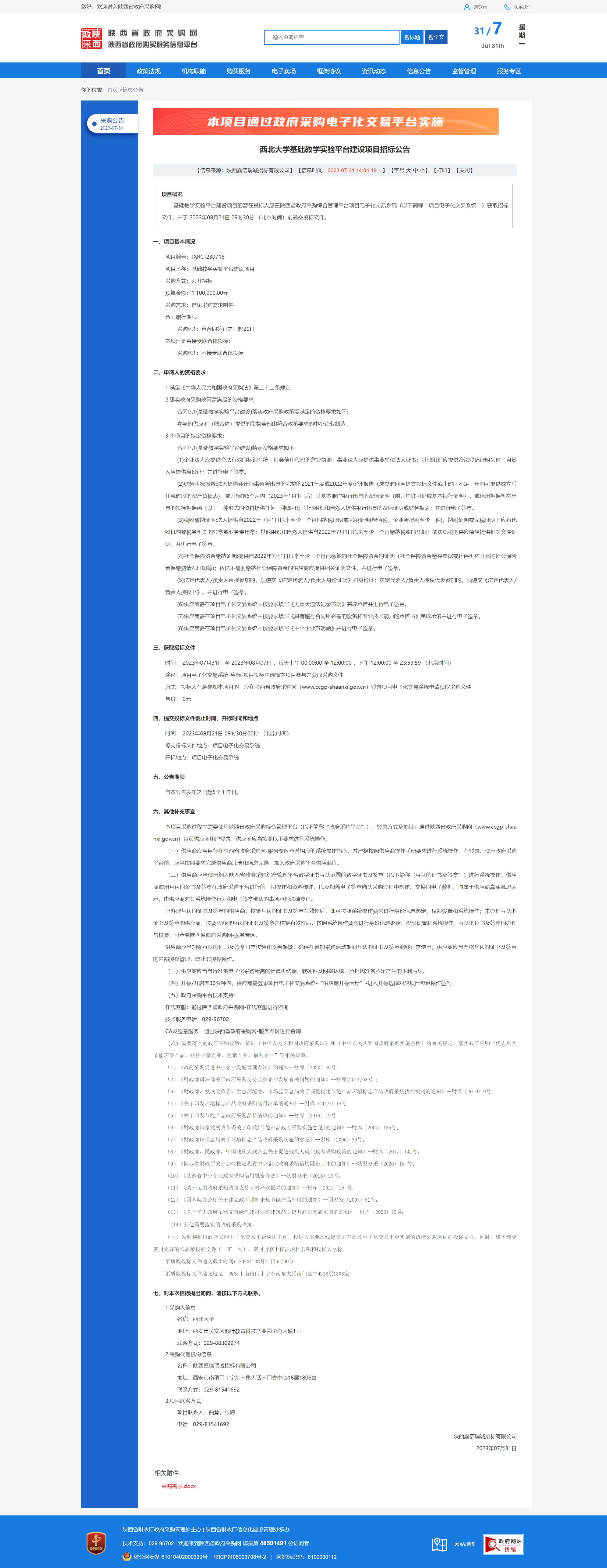 广发体育基础教学实验平台建设项目招标公告 作者: 编辑:采购与招标办公室 时间:2023-07-31 原公告链接:http://www.ccgp-shaanxi.gov.cn/freecms/site/shaanxi/ggxx/info/2023/8a69c0be899a71f00189a9e854200a61.html?noticeType=001011¬iceId=3bdd4942-2f69-11ee-9a8e-08c0eb20c666