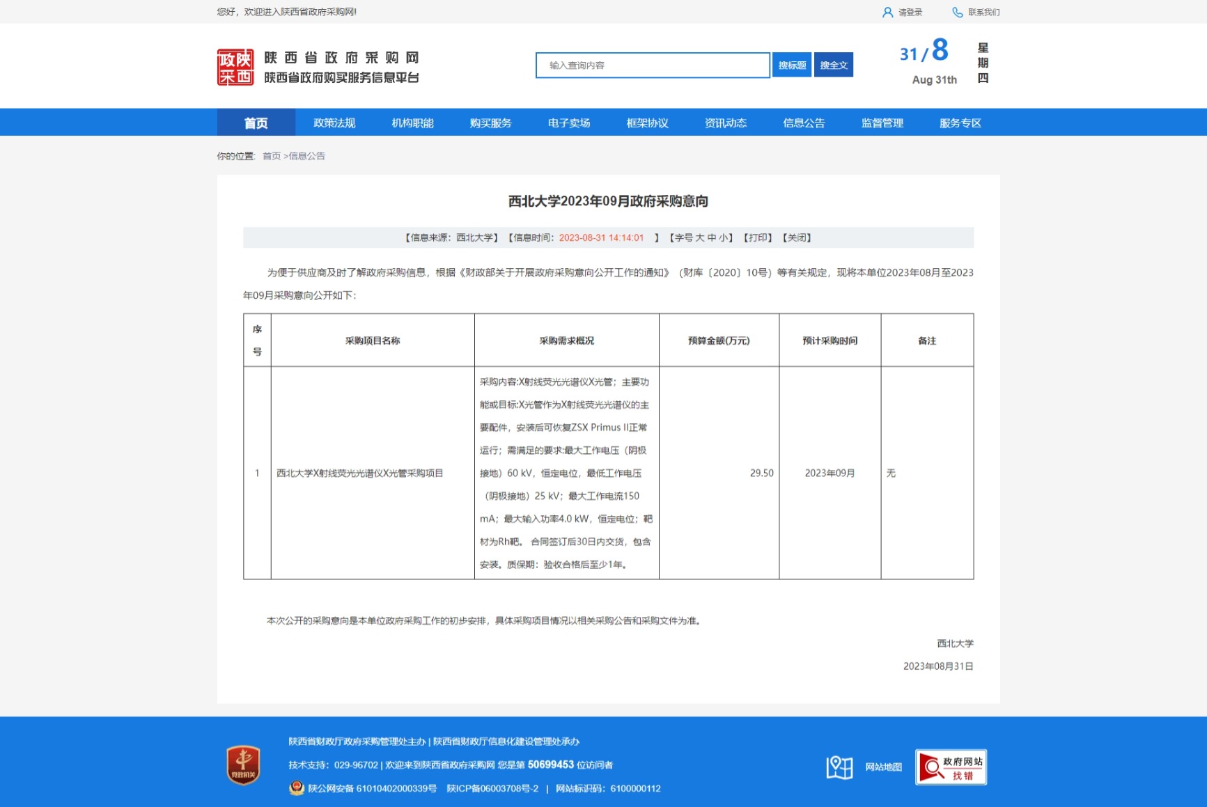 广发体育2023年09月政府采购意向 作者: 编辑: 时间:2023-08-31 原公告链接:http://www.ccgp-shaanxi.gov.cn/freecms/site/shaanxi/ggxx/info/2023/8a69c1f48a442b3e018a445d305713ea.html?noticeType=59¬iceId=c7afb278-47c6-11ee-9a8e-08c0eb20c666