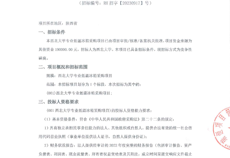 广发体育专业低温冰箱采购项目竞争性磋商公告 作者: 编辑:采购与招标办公室 时间:2023-09-22 原公告链接:http://bulletin.sntba.com/biddingBulletin/2023-09-22/680755.html