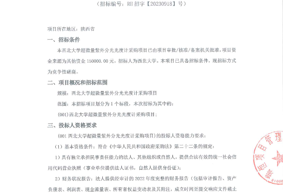 广发体育超微量紫外分光光度计采购项目竞争性磋商公告 作者: 编辑:采购与招标办公室 时间:2023-09-22 原公告链接:http://bulletin.sntba.com/biddingBulletin/2023-09-22/680812.html