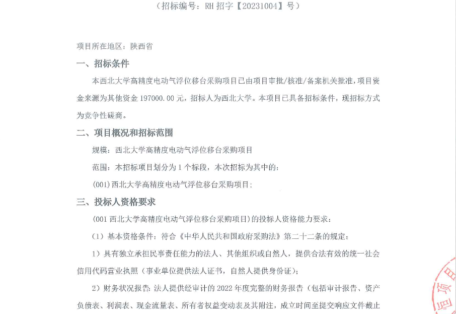 广发体育高精度电动气浮位移台采购项目竞争性磋商公告 作者: 编辑:采购与招标办公室 时间:2023-10-18 原公告链接:http://bulletin.sntba.com/biddingBulletin/2023-10-17/735313.html