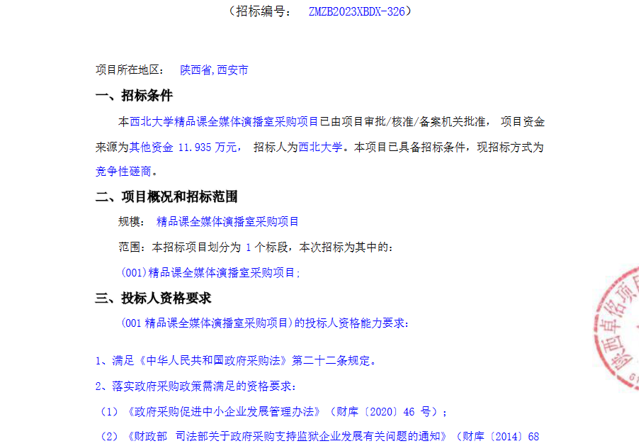 广发体育精品课全媒体演播室采购项目竞争性磋商公告 作者: 编辑:采购与招标办公室 时间:2023-10-24 原公告链接:http://bulletin.sntba.com/biddingBulletin/2023-10-23/749879.html
