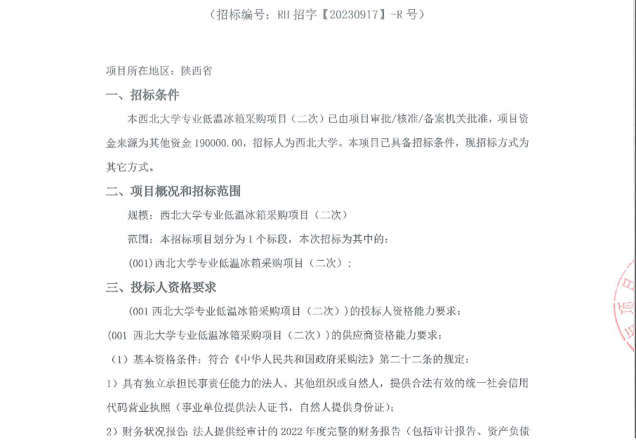 广发体育专业低温冰箱采购项目(二次)竞争性磋商公告 作者: 编辑:采购与招标办公室 时间:2023-10-25 原公告链接:http://bulletin.sntba.com/biddingBulletin/2023-10-24/752921.html