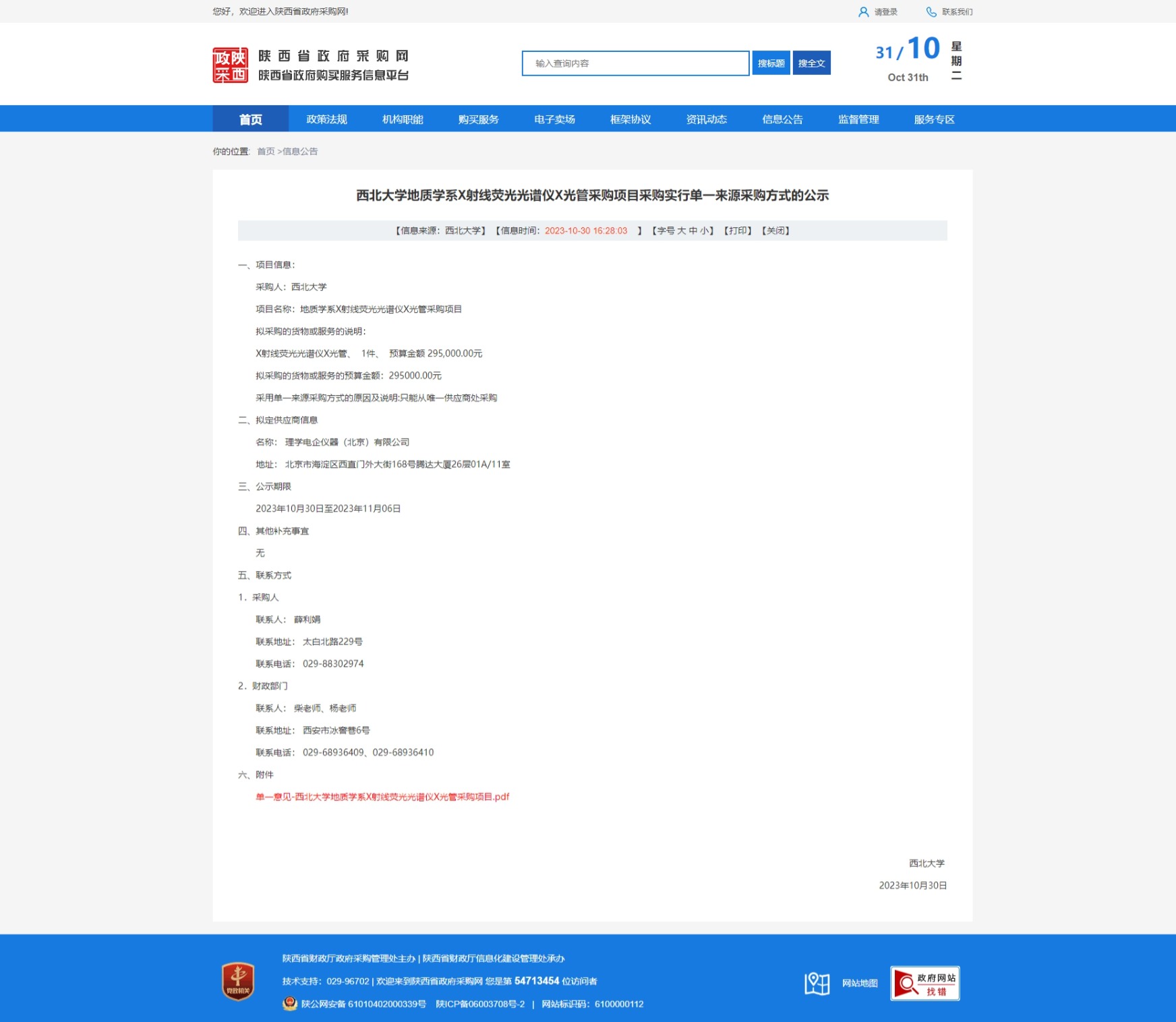 广发体育地质学系X射线荧光光谱仪X光管采购项目采购实行单一来源采购方式的公示 作者: 编辑:采购与招标办公室 时间:2023-10-31 原公告链接:http://www.ccgp-shaanxi.gov.cn/freecms/site/shaanxi/ggxx/info/2023/8a69c9798b7366a8018b7fabb9f2065e.html?noticeType=001051¬iceId=8d5cb875-76ff-11ee-9a8e-08c0eb20c666
