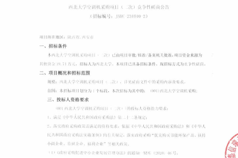 广发体育空调机采购项目(二次)竞争性磋商公告