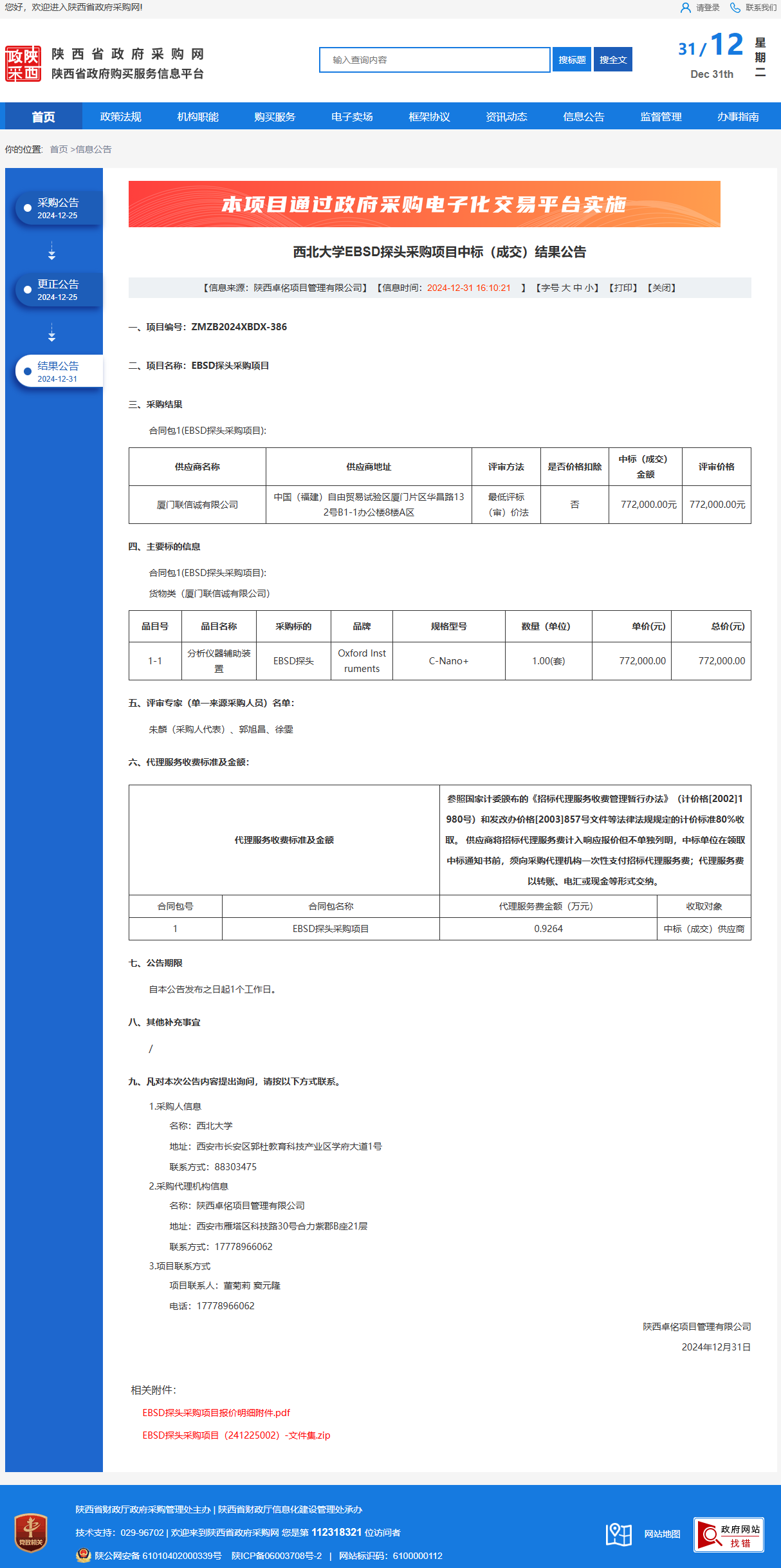 广发体育EBSD探头采购项目中标(成交)结果公告 作者:采购与招标办公室 编辑: 时间:2024-12-31 原公告链接:https://www.ccgp-shaanxi.gov.cn/freecms/site/shaanxi/ggxx/info/2024/8a69c44e9218572b01941bbf3cfd0e2a.html?noticeType=001023¬iceId=56151531-c750-11ef-8063-08c0eb20c666