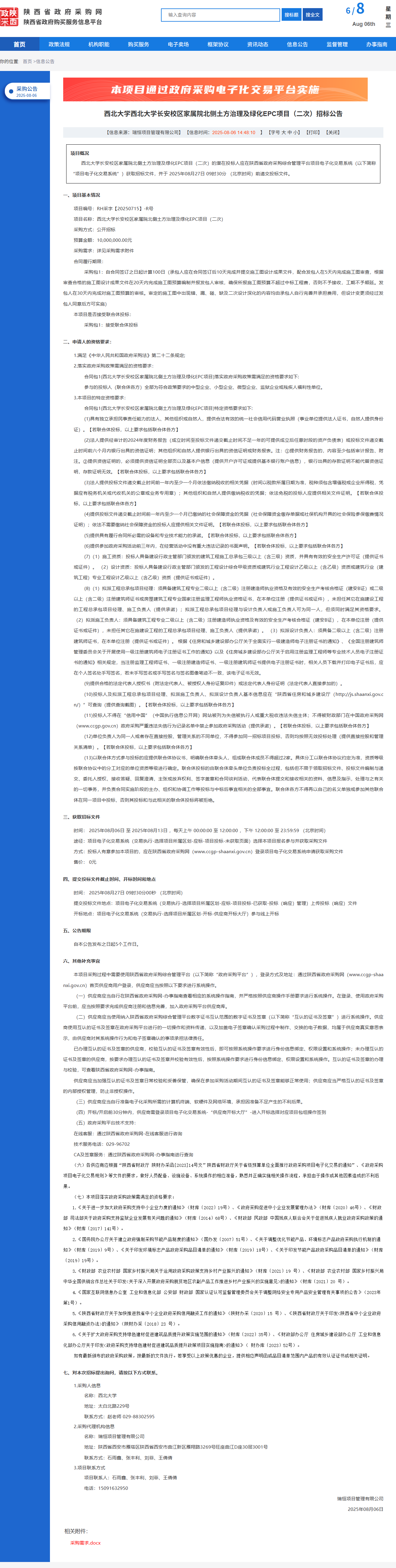 广发体育广发体育长安校区家属院北侧土方治理及绿化EPC项目(二次)招标公告 作者: 编辑:党丹珩 时间:2025-08-06 公告地址:http://www.ccgp-shaanxi.gov.cn/freecms/site/shaanxi/ggxx/info/2025/8a69c0c89860f60201987e16be4e0db6.html?noticeType=001011¬iceId=5e176ebb-7293-11f0-8063-08c0eb20c666