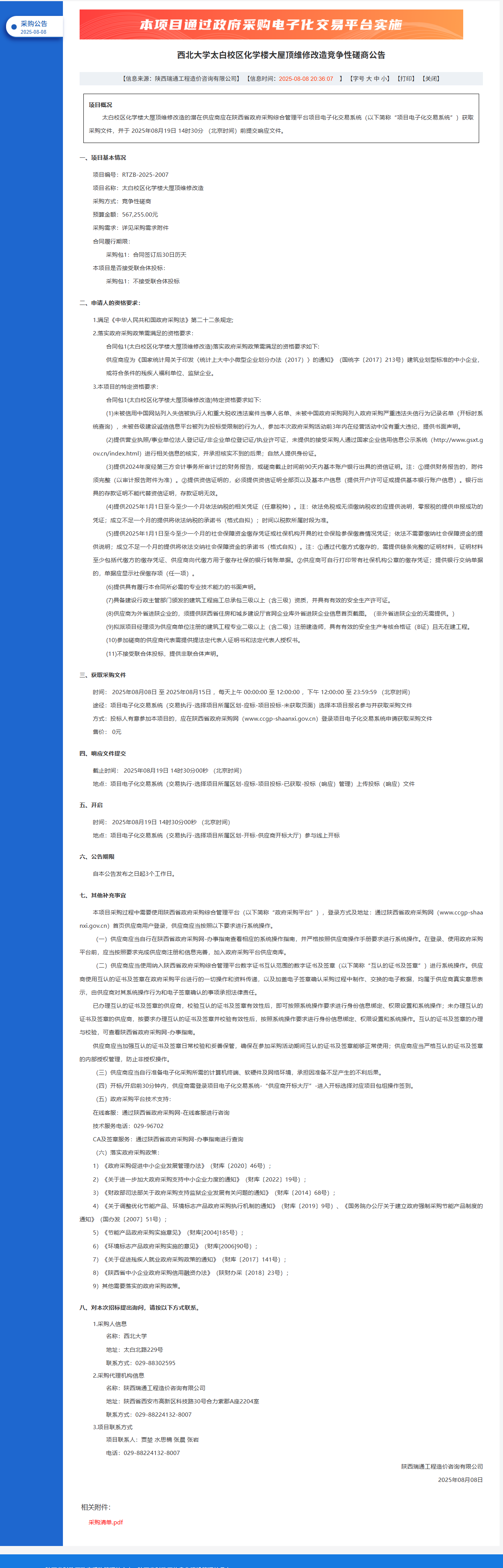 广发体育太白校区化学楼大屋顶维修改造竞争性磋商公告 作者: 编辑:党丹珩 时间:2025-08-08 公告地址:http://website.nwu.edu.cn:8080/system/caslogin.jsp;jsessionid=C175413E68D078CC4A954A9C17C72200